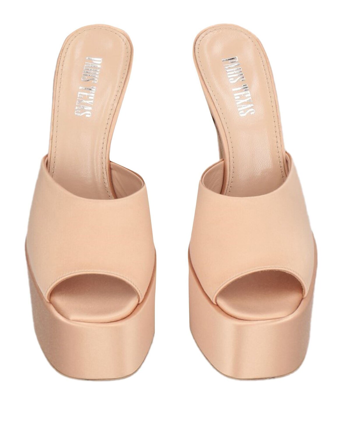 Атлас, без аппликаций, одноцветное изделие, кожаная подкладка, скругленный носок, конический каблук, кожаная подошва, шлепанцы