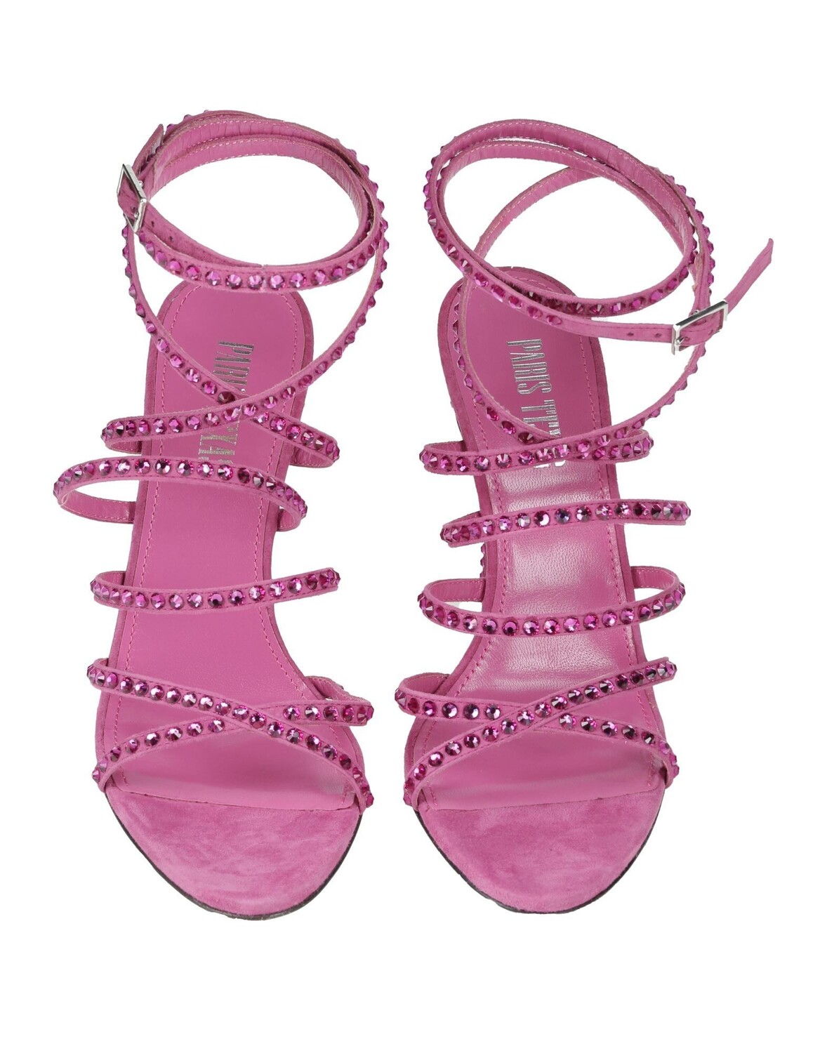 Замша, кристаллы, одноцветное изделие с аппликациями, подкладка из кожи, застежка на пряжке, круглый носок, каблук-шпилька, обтянутый каблук, кожаная подошва, содержит нетекстильные части животного происхождения, босоножки с ремешком на щиколотке