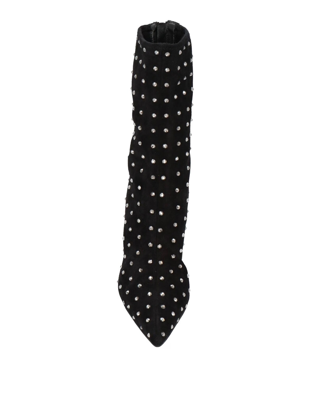 Кожа, эффект замши, стразы, одноцветное изделие с аппликациями, подкладка из кожи, застежка-молния, узкий носок, каблук-щипок, кожаная подошва, содержит нетекстильные части животного происхождения, ботинки-носки