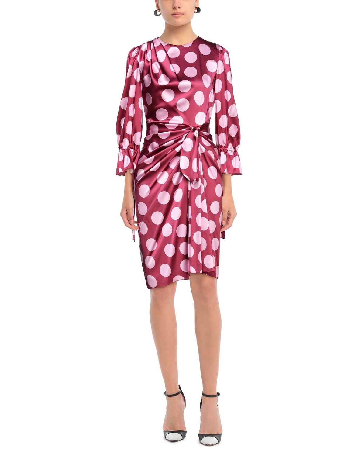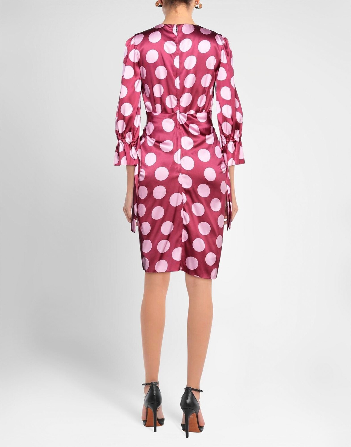 Атлас, драпированная отделка, горошек, круглый воротник, рукава 3/4, без карманов, застежка-молния, внутри на подкладке, эластичный