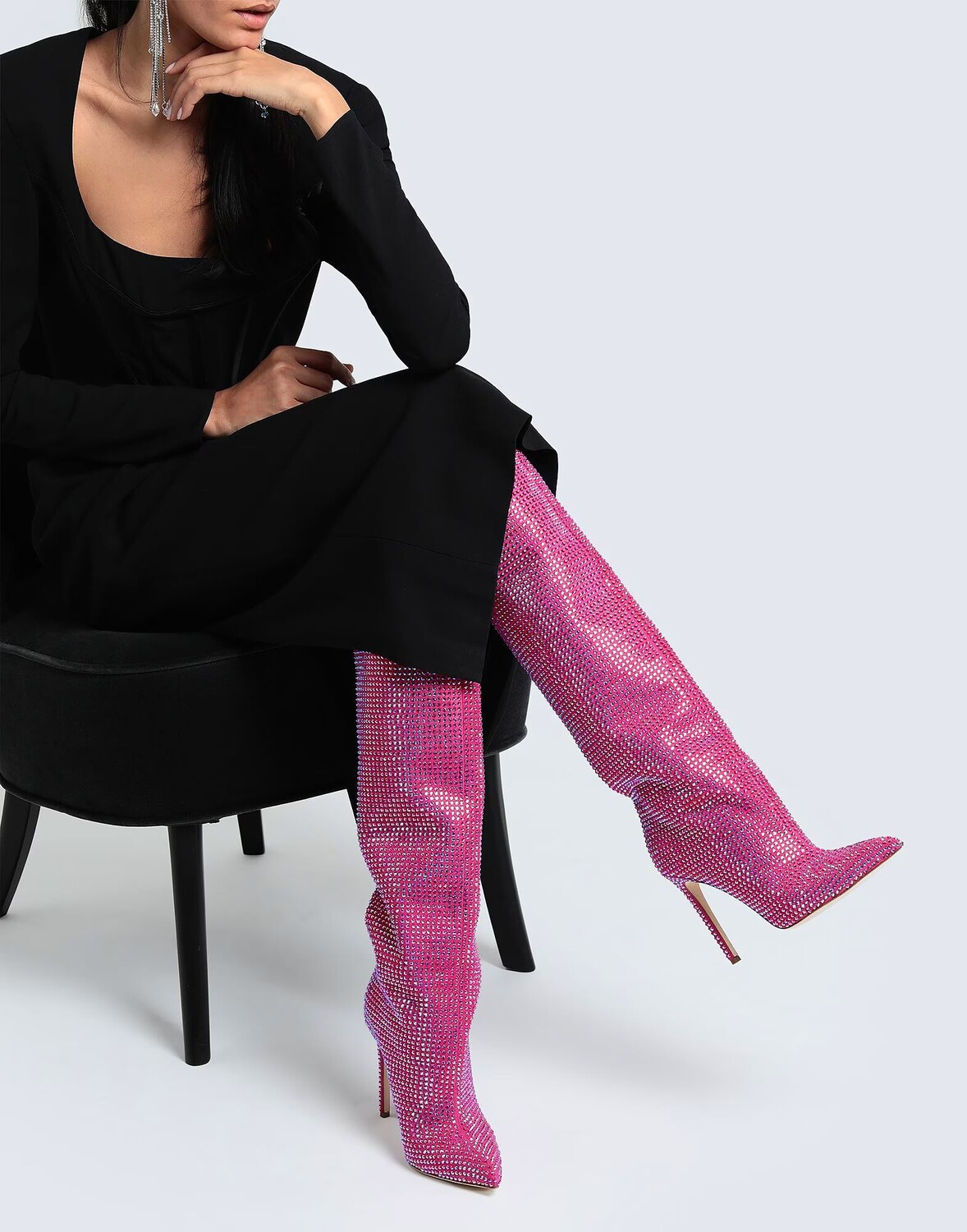 Кожа, эффект замши, стразы, одноцветное изделие с аппликациями, кожаная подкладка, узкий носок, каблук-шпилька, кожаная подошва, содержит нетекстильные части животного происхождения, замшевые ботинки