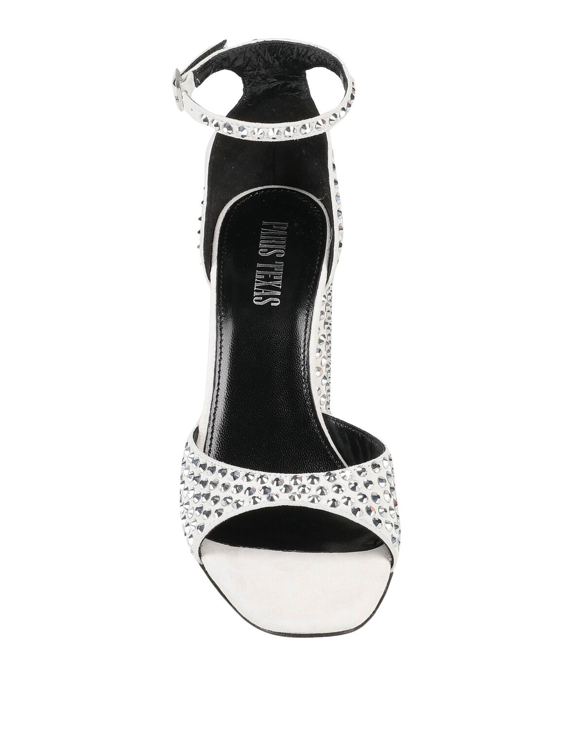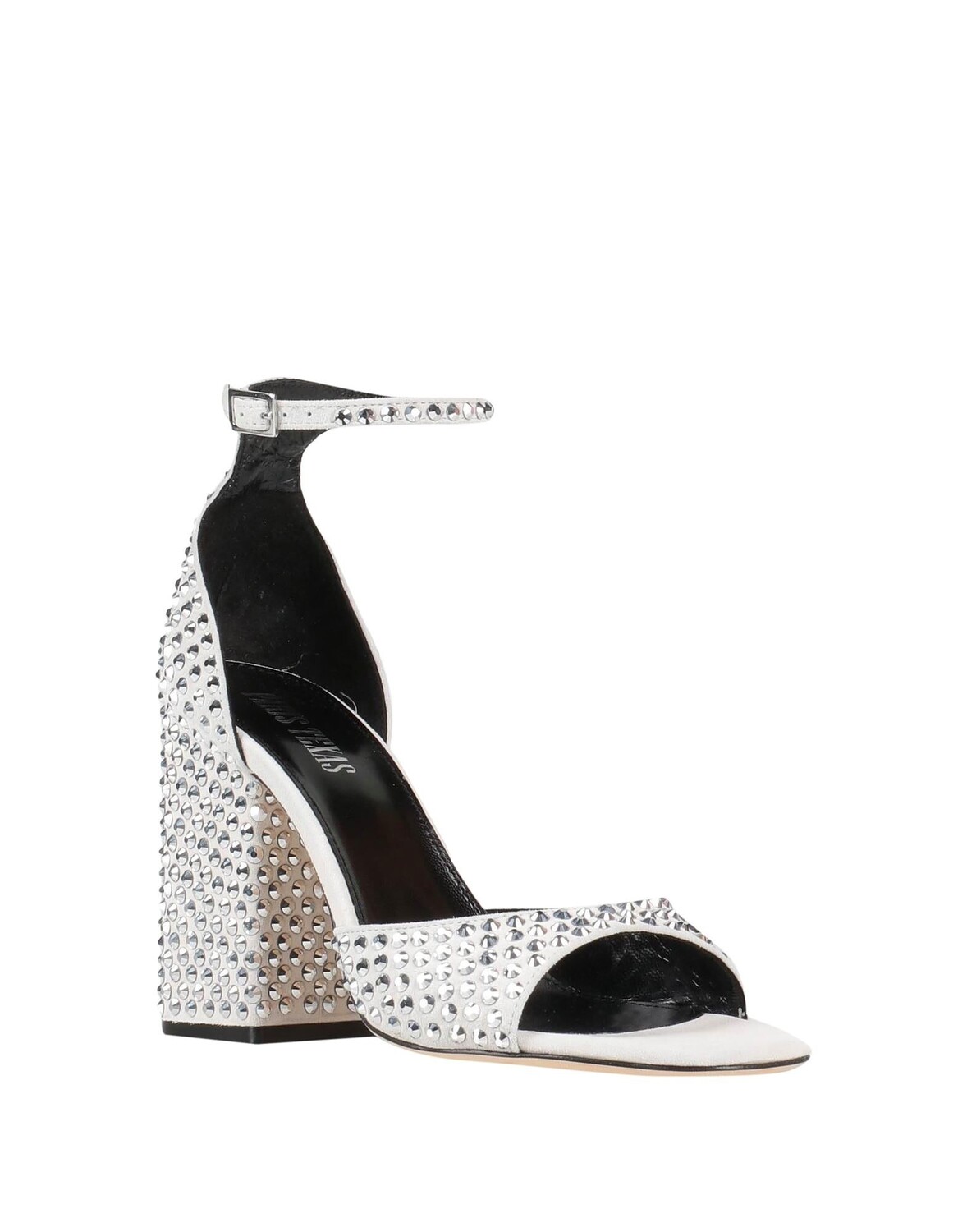 Кожа, стразы, одноцветное изделие с аппликациями, кожаная подкладка, ремешок с пряжкой, квадратный носок, геометрический каблук, обтянутый каблук, кожаная подошва, содержит нетекстильные части животного происхождения, сандалии с ремешком на щиколотке