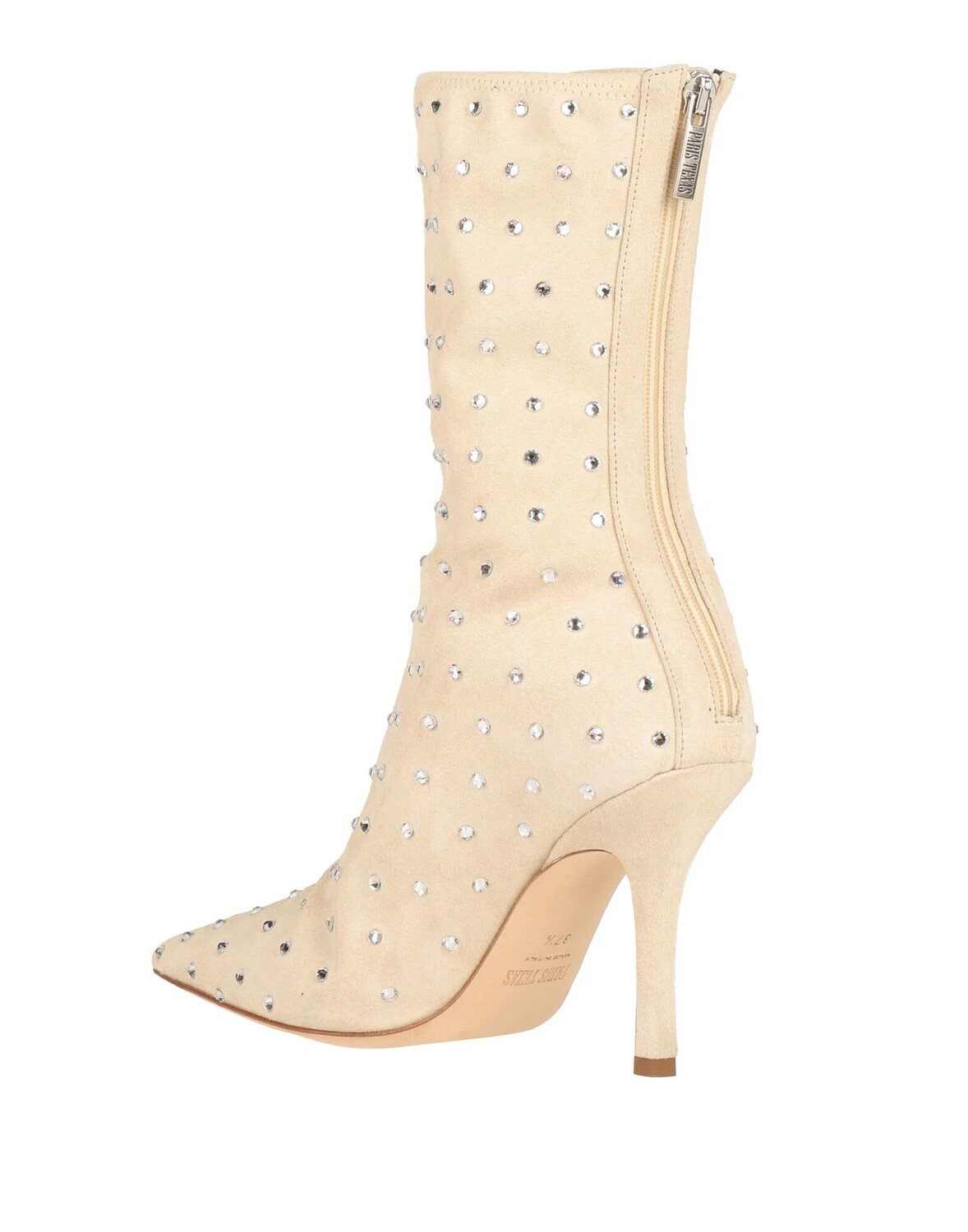 Кожа, эффект замши, стразы, одноцветное изделие с аппликациями, подкладка из кожи, застежка-молния, узкий носок, каблук-щипок, кожаная подошва, содержит нетекстильные части животного происхождения, ботинки-носки
