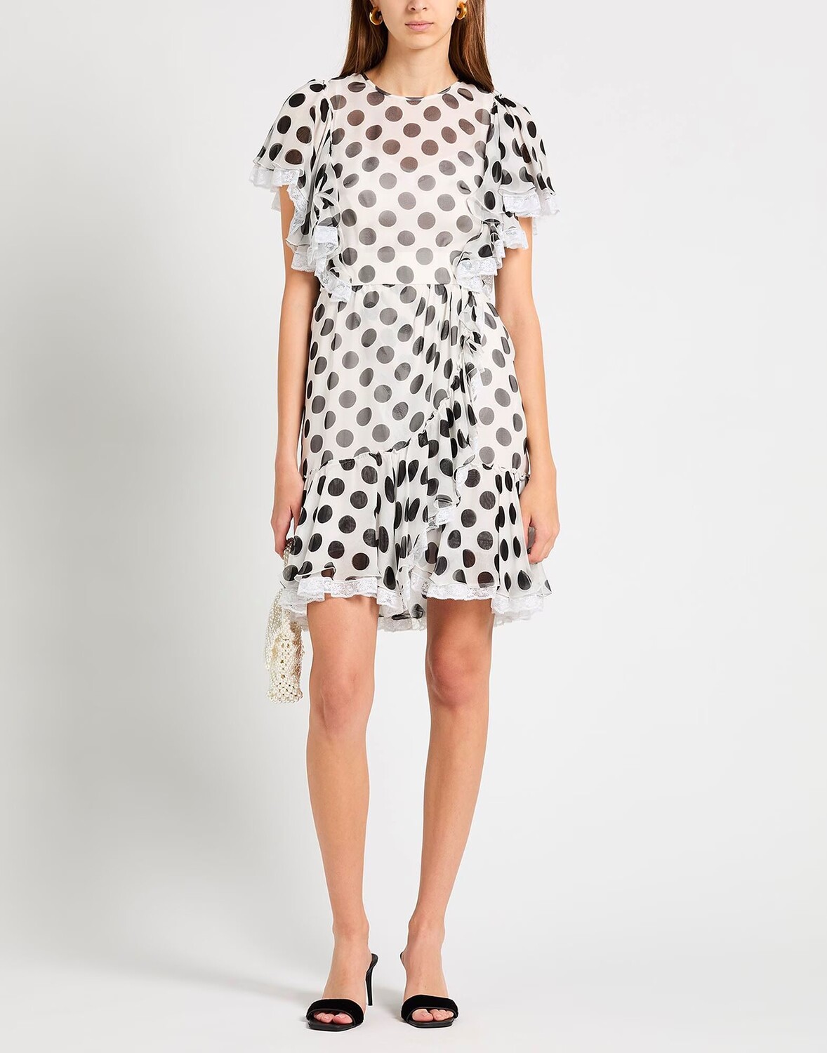 Кружево, шифон, присборки, горошек, круглый вырез, короткие рукава, скользящий крой, застежка-молния, без карманов, комплект из 2 предметов, химчистка, нельзя сушить в стиральной машине, не отбеливать, платье-клеш