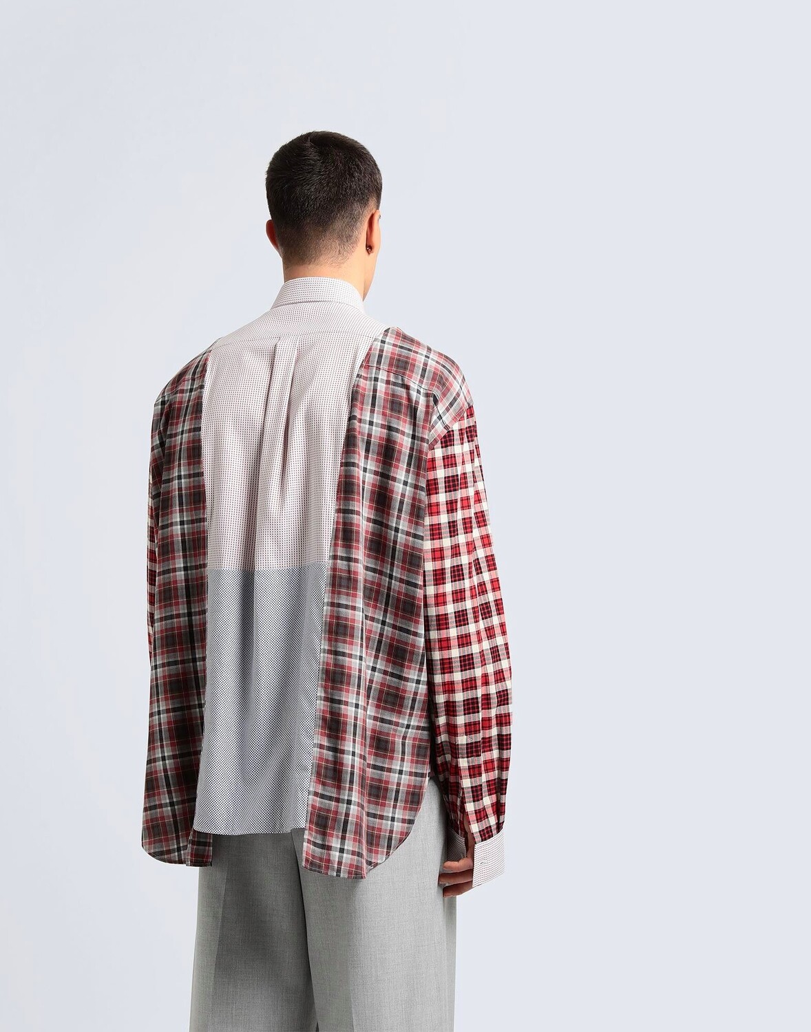 Фланель, полотняное переплетение, контрастные аппликации, логотип бренда, узор в клетку «тартан», в горошек, классический вырез горловины, длинные рукава, манжеты на пуговицах, застежка на пуговицы, без карманов, большой размер