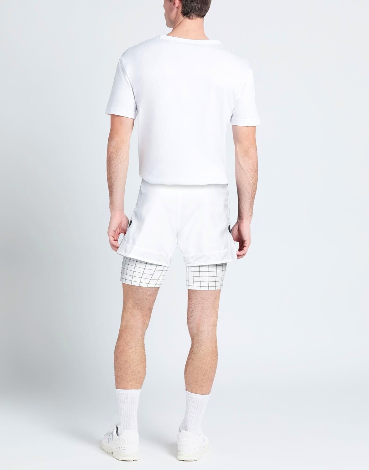 Техническая ткань, синтетический трикотаж, логотип бренда, контрастные аппликации, двухцветный, в клетку, средняя посадка, эластичная талия, застежка на шнурок, множество карманов, карман на молнии, спортивный стиль