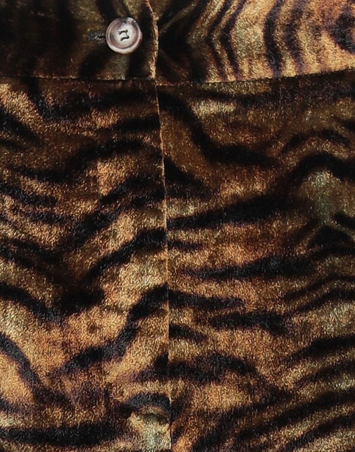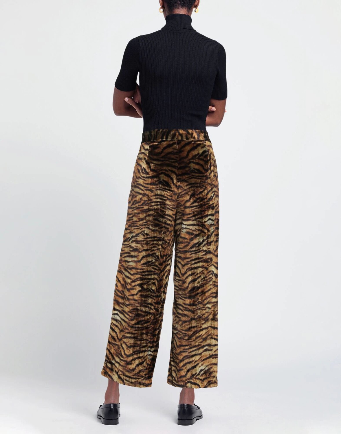 Шенилл, без аппликаций, тигровые полоски, завышенная талия, широкая брючина, удобный крой, 1 пуговица, застежка-молния, множество карманов, брюки