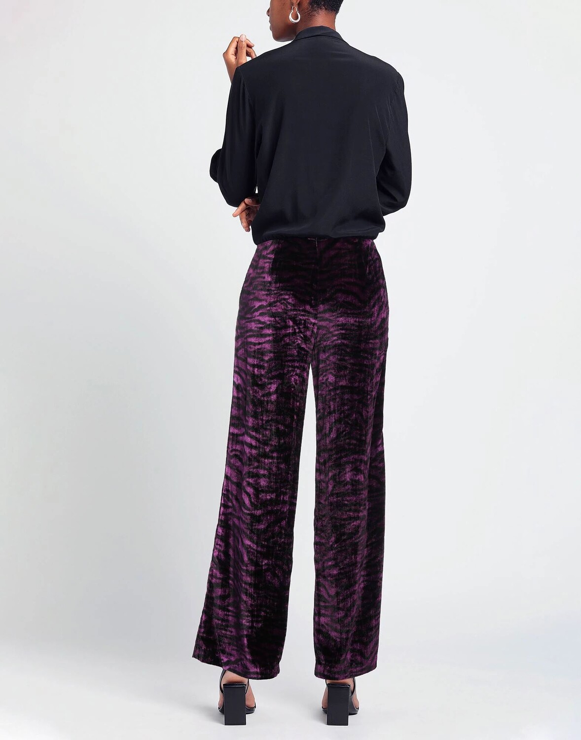 Шенилл, без аппликаций, тигровые полоски, завышенная талия, широкая брючина, удобный крой, 1 пуговица, застежка-молния, множество карманов, брюки