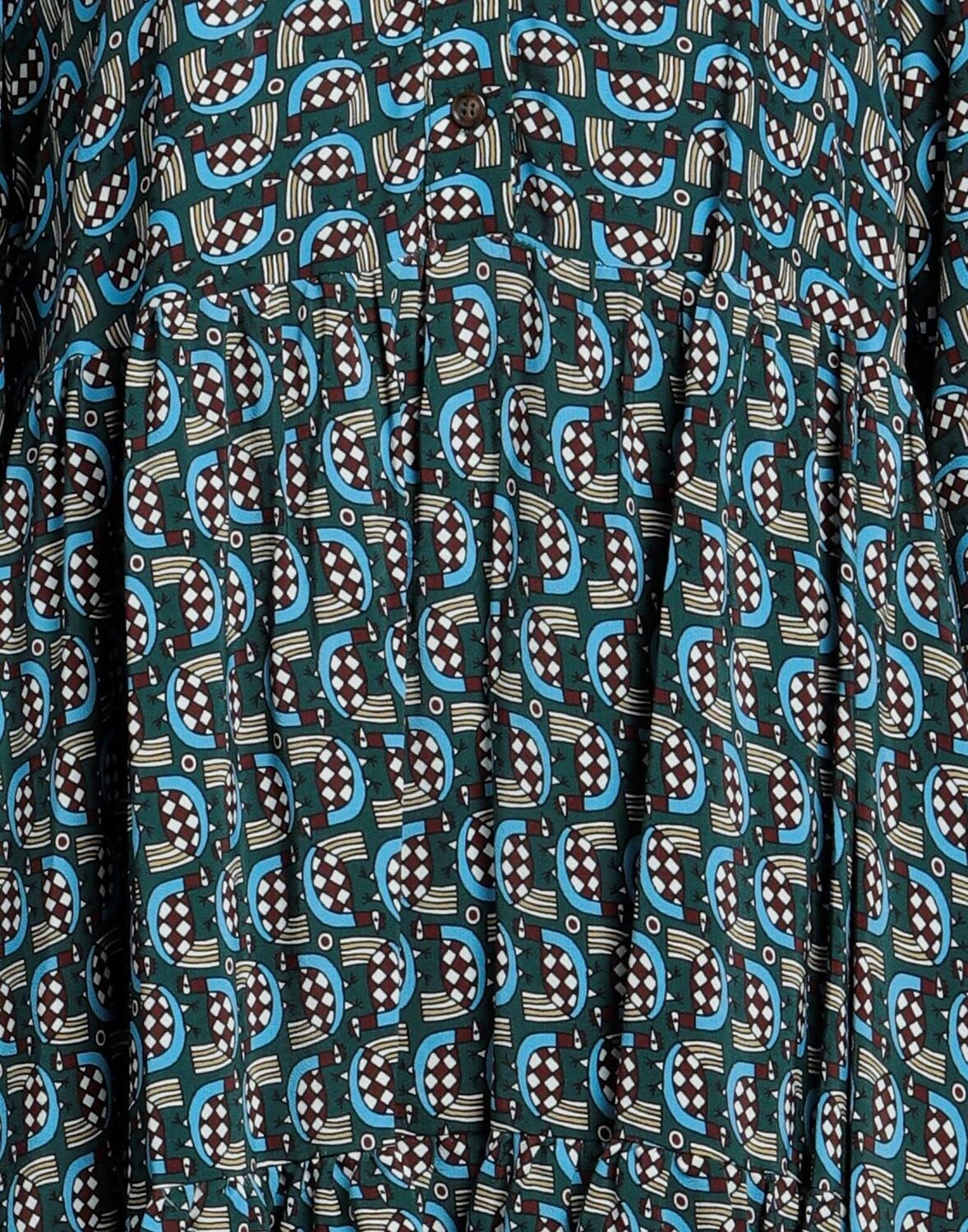 Креп, оборки, оптический узор, воротник-стойка, длинные рукава, манжеты на пуговицах, без подкладки, пуговицы, без карманов, платье-рубашка