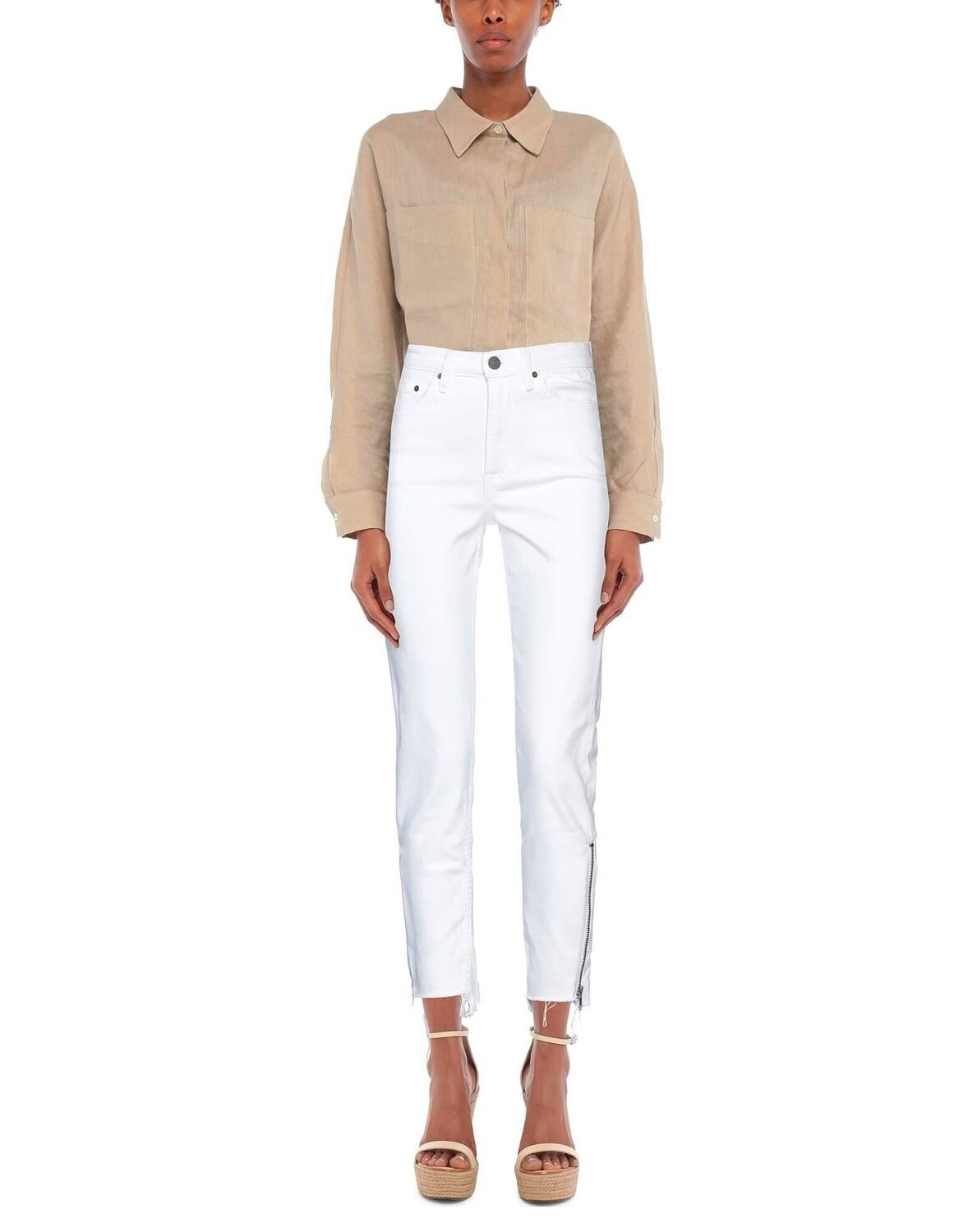 Джинсовая ткань, логотип, одноцветное изделие, цветная стирка, завышенная талия, застежка спереди, пуговица, молния, множество карманов, молнии по нижнему краю