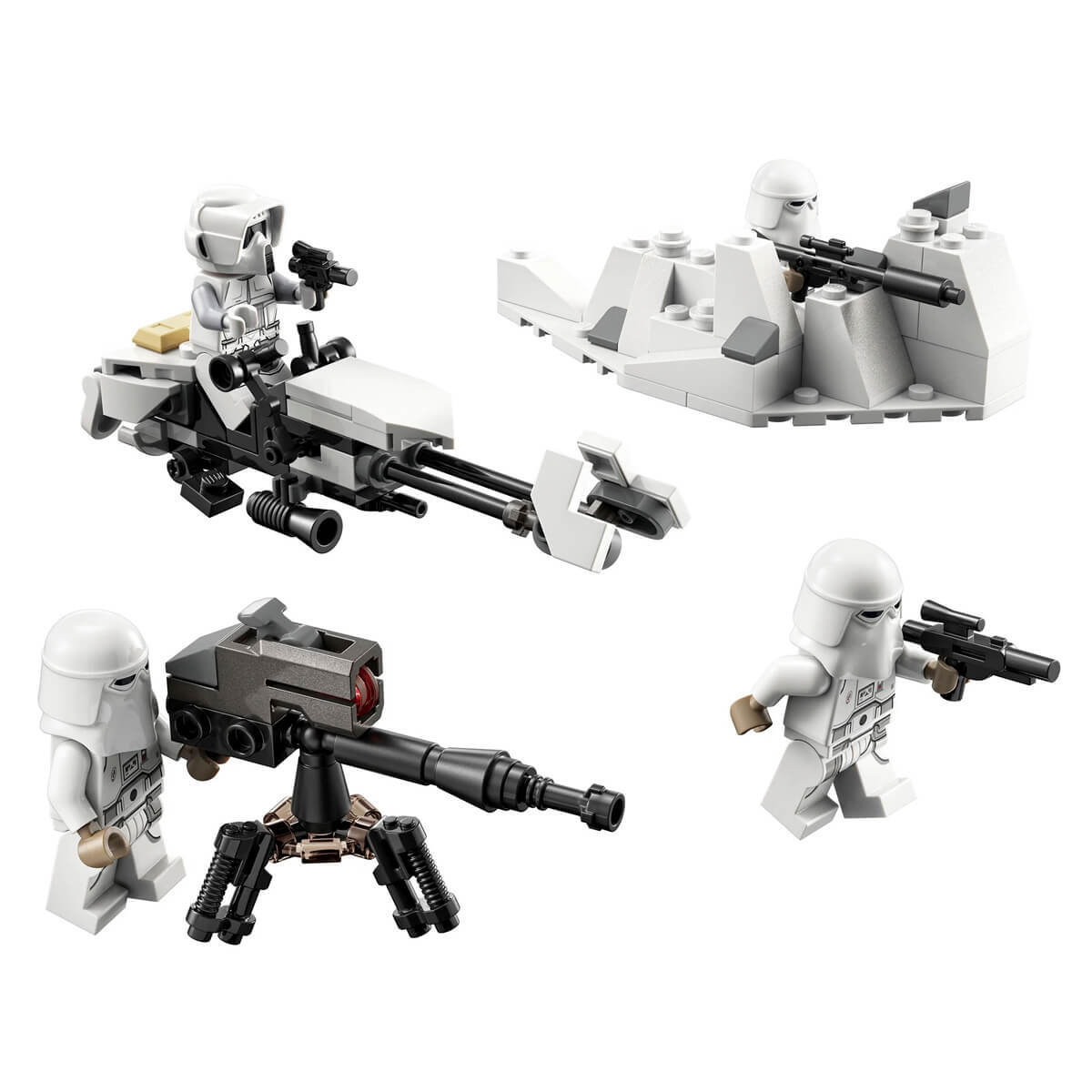В набор входят четыре мини фигурки LEGO с различным бластерным оружием, сборный имперский спидер с Хота, стреляющий шипами тяжелый бластер E-Web и снежная траншея с дополнительными боеприпасами.