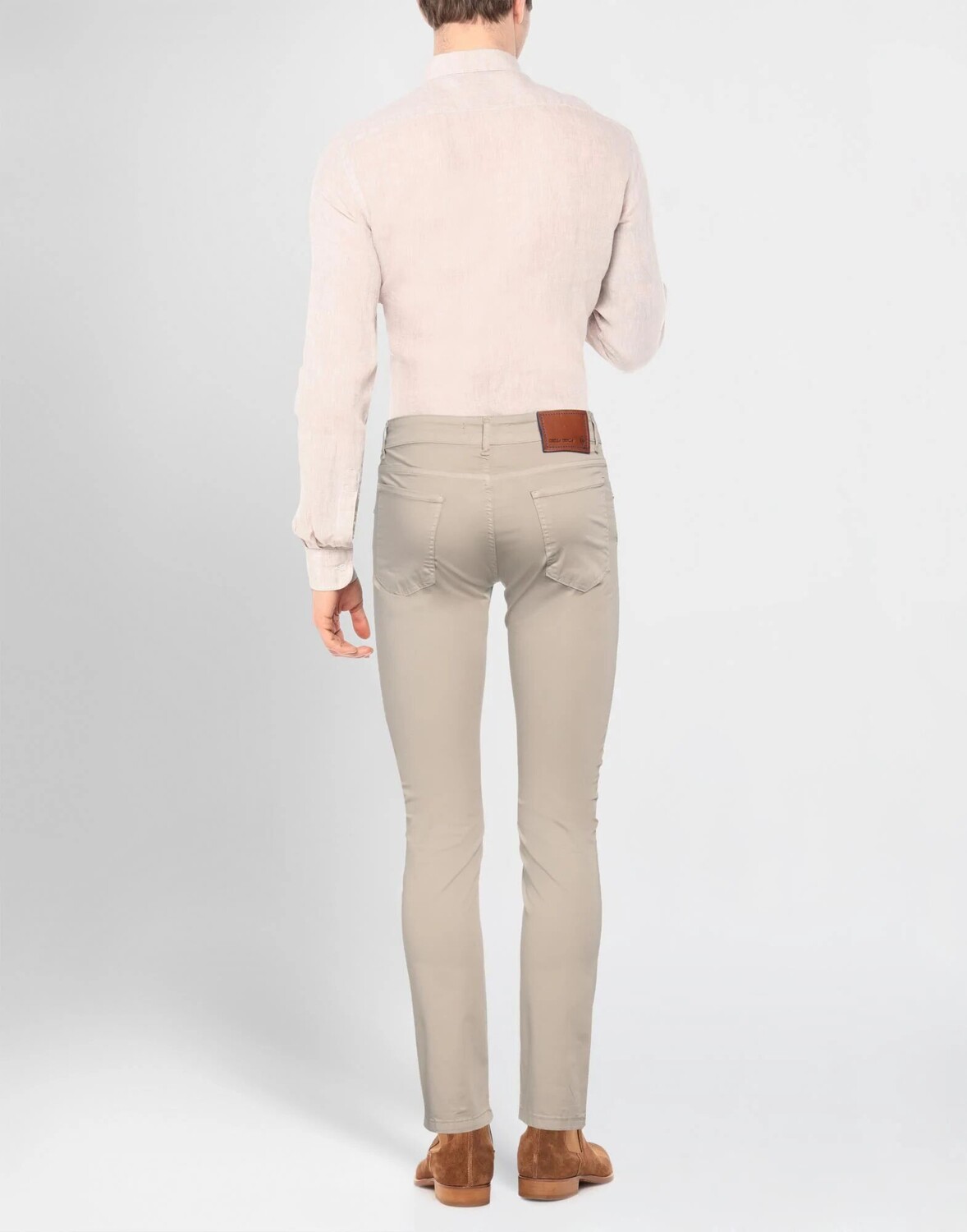 Полотняное переплетение, кожаные аппликации, логотип бренда, одноцветное изделие, заниженная талия, шлевки для ремня, зауженная брючина, стандартный крой, застежка-молния, 1 пуговица, несколько карманов, эластичный, содержит нетекстильные части животного происхождения, 5 карманов
