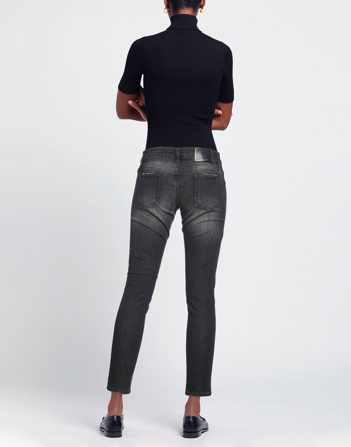 Деним, выцветший, без аппликаций, одноцветное изделие, цветная расцветка, заниженная талия, шлевки для ремня, зауженные брючины, приталенный крой, застежка на пуговицы, застежка-молния, пять карманов, стрейч, джинсы прямого кроя