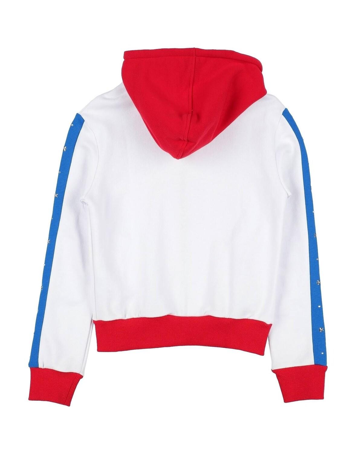 Толстовка флис, стразы, полоски по боковым швам, двухцветный, воротник с капюшоном, длинные рукава, подкладка из махровой ткани, застежка-молния, множество карманов, стирать при 30°C, не подвергать химчистке, не отбеливать, нельзя сушить в стиральной машине, гладить при 110°С макс.