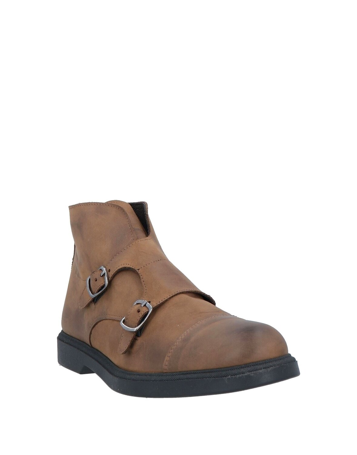 Кожа, нубук, эффект потертости, без аппликаций, одноцветное изделие, кожаная подкладка, пряжка для ремня, скругленный носок, без каблука, резиновая рифленая подошва, содержит нетекстильные части животного происхождения, ботильоны