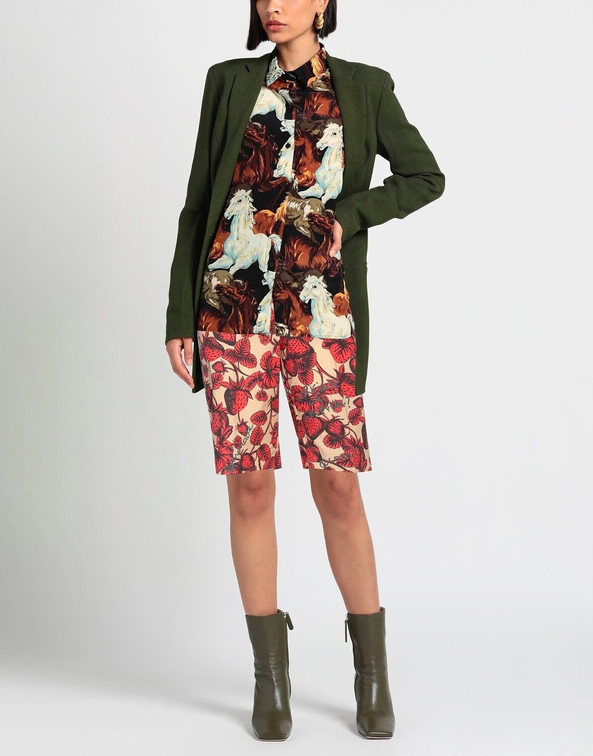 Полотняное переплетение, логотип бренда, цветочный дизайн, средняя посадка, прямые брючины, стандартный крой, застежка-молния, застежка на крючки, несколько карманов, эластичный, индивидуальный пошив