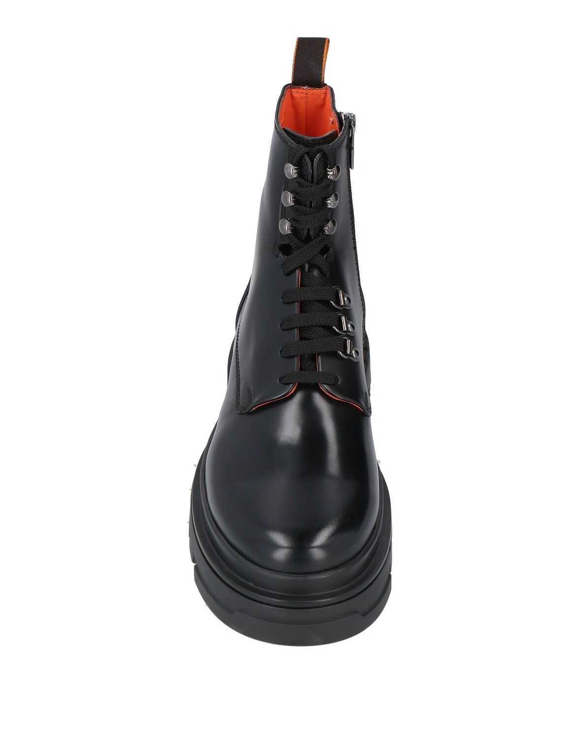 Полированная кожа, открытая спина, одноцветное изделие, кожаная подкладка, круглый носок, плоская поверхность, подошва с резиновыми накладками, содержит нетекстильные части животного происхождения, массивные ботинки, большого размера