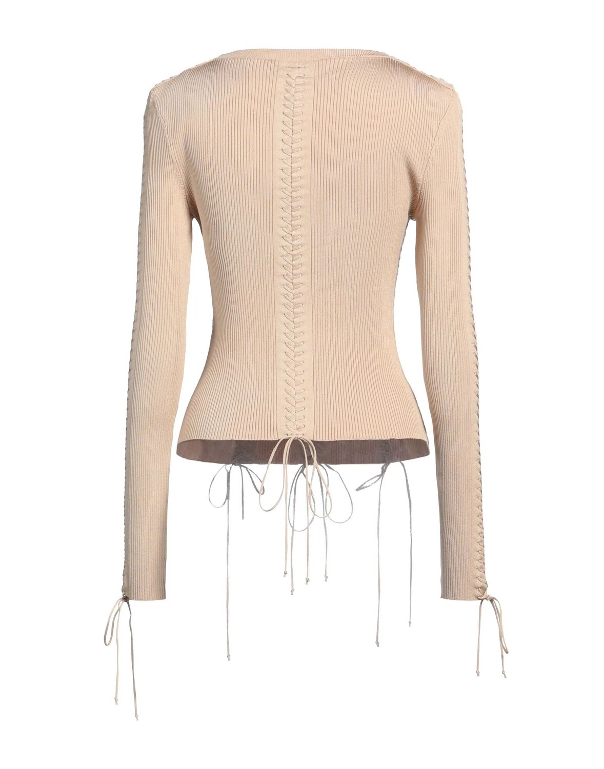 Трикотажное, в рубчик, легкая вязка, без аппликаций, одноцветное изделие, круглый вырез, длинные рукава, без карманов, химчистка, нельзя сушить в стиральной машине, не отбеливать