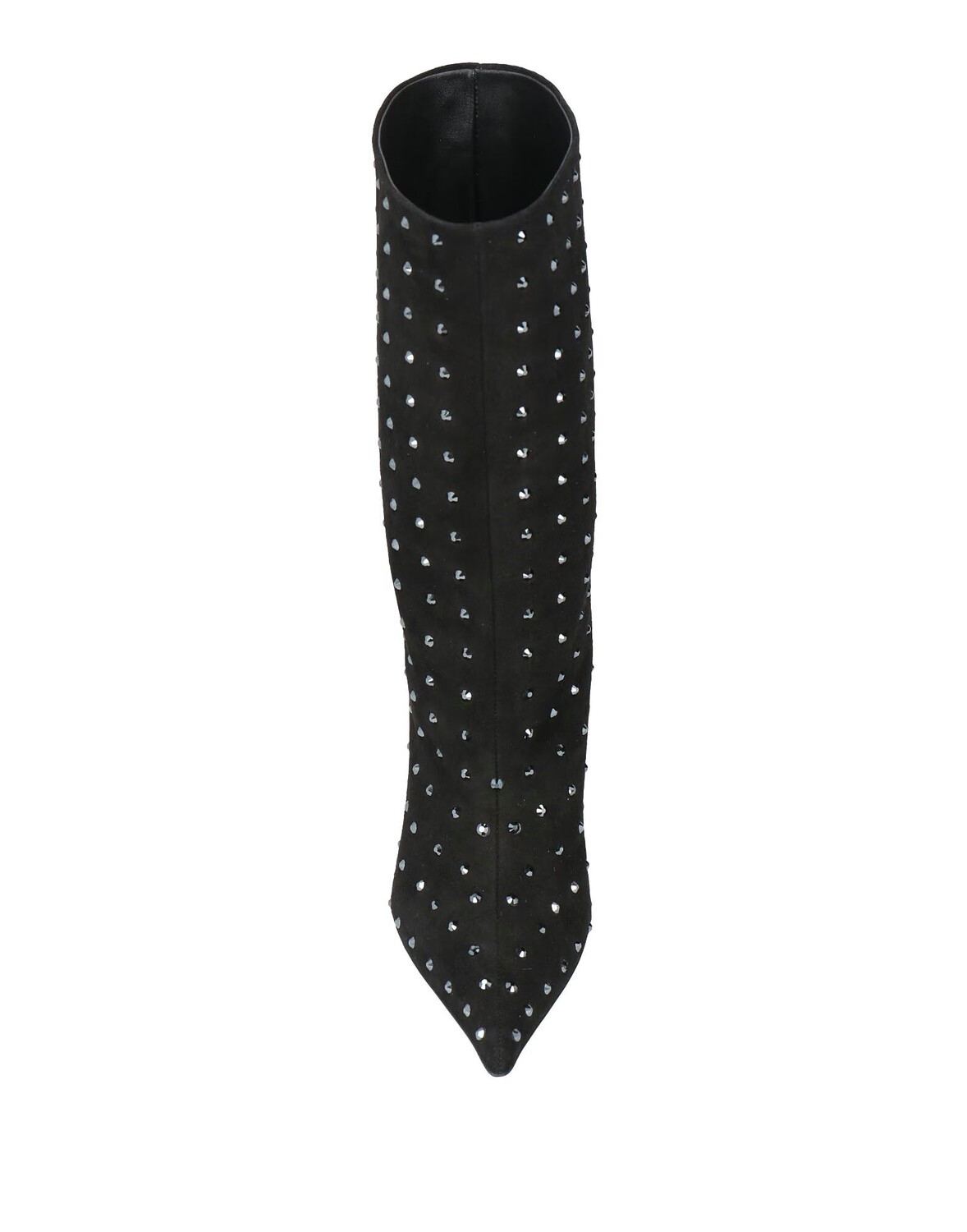 Замша, кристаллы, одноцветное изделие с аппликациями, подкладка кожа, застежка-молния, острый носок, каблук-шип, пластиковый каблук, резиновая подошва, содержит нетекстильные части животного происхождения, ботильоны замшевые