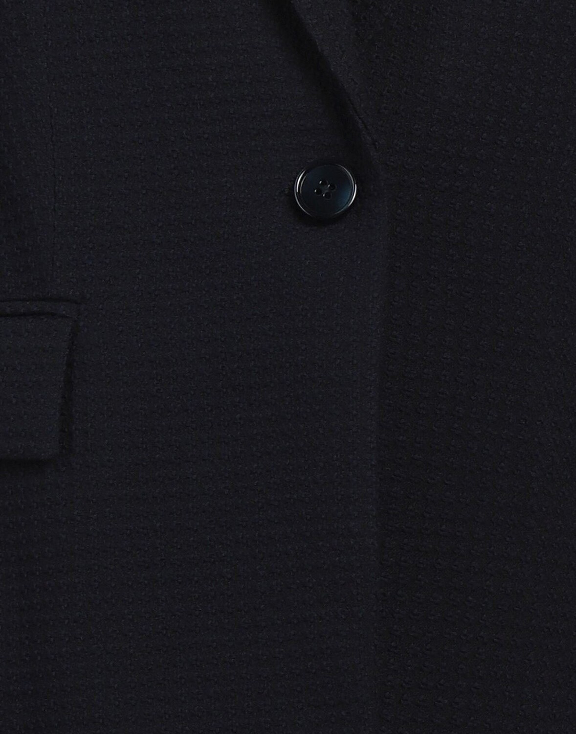 Трикотаж, жаккард, легкая вязка, без аппликаций, одноцветное изделие, воротник с лацканами, длинные рукава, частично на подкладке, застежка на пуговицы, множество карманов, стрейч, химчистка, нельзя отбеливать, нельзя сушить в стиральной машине, однобортный пиджак