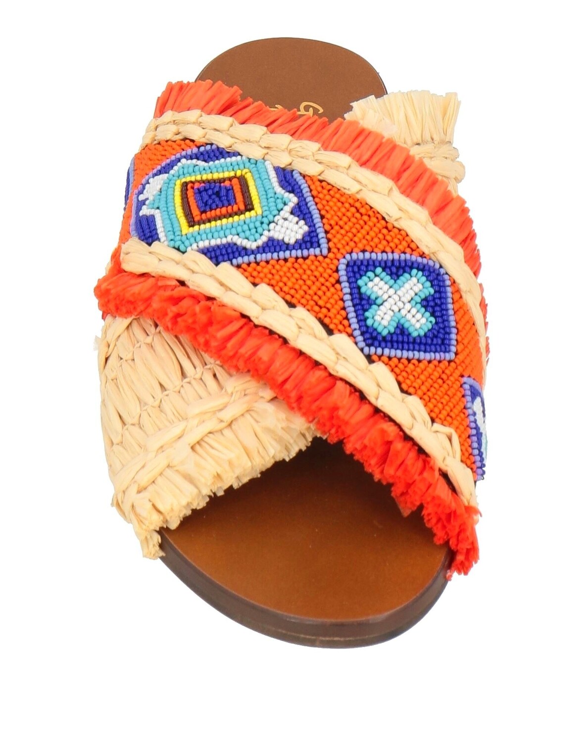 Солома, бисер, разноцветный, подкладка из кожи, круглый носок, без каблука, резиновая подошва, содержит нетекстильные части животного происхождения, сандалии
