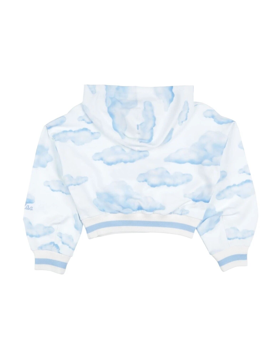 Толстовка флис, стразы, логотип бренда, разноцветный узор, воротник с капюшоном, длинные рукава, подкладка из махровой ткани, без карманов, стрейч, стирка при 30°C, не подвергать химчистке, не отбеливать, не сушить в стиральной машине, гладить при 110° с макс