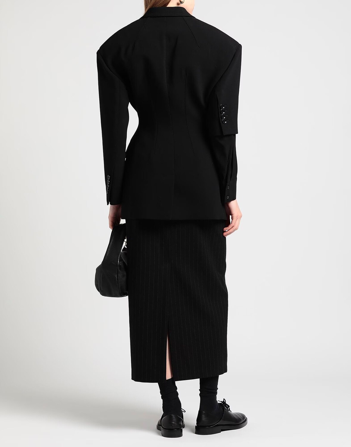 Креп, без аппликаций, одноцветное изделие, воротник с лацканами, двубортный, короткие рукава, подплечники, внутри на подкладке, застежка на пуговицы, множество карманов, разрез сзади, химчистка, не отбеливать, нельзя сушить в стиральной машине, двубортное пальто