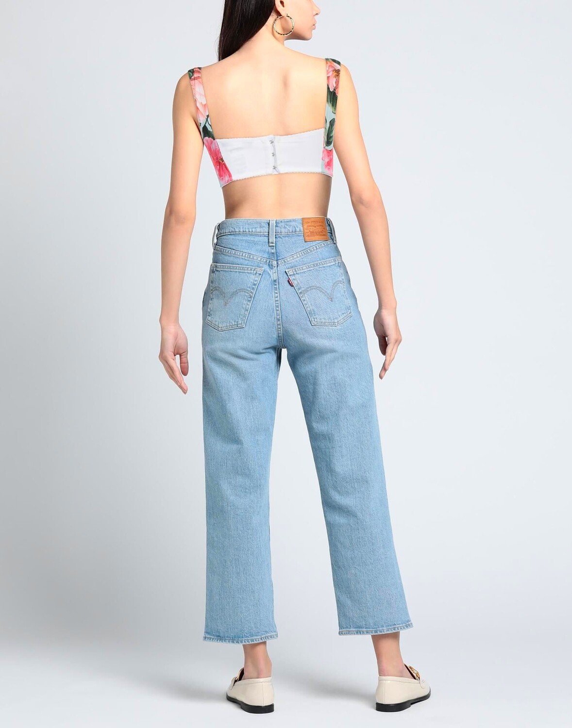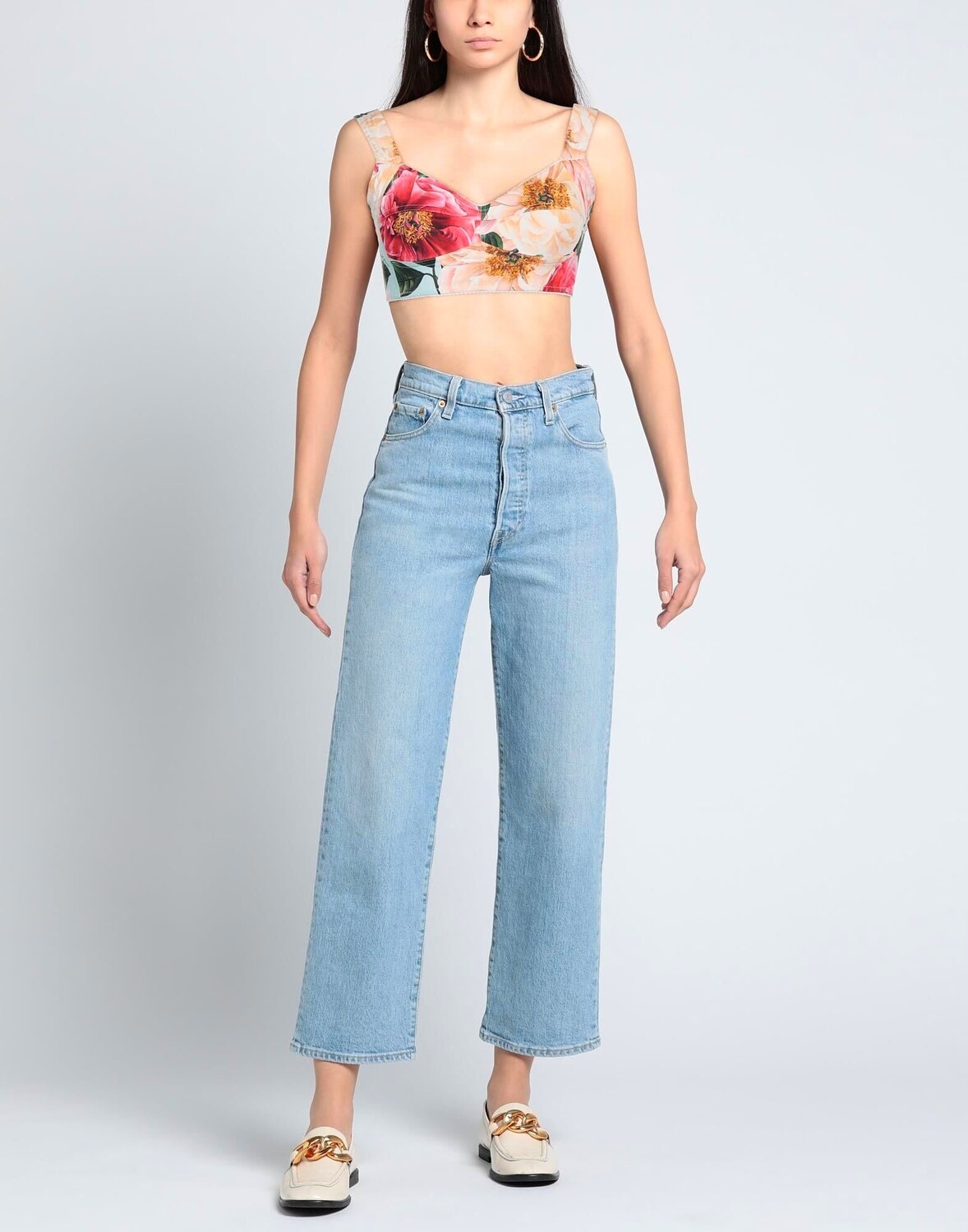 Ткань, логотип бренда, цветочный принт, глубокий вырез, без рукавов, застежка на крючки, без карманов, стрейч, укороченный топ