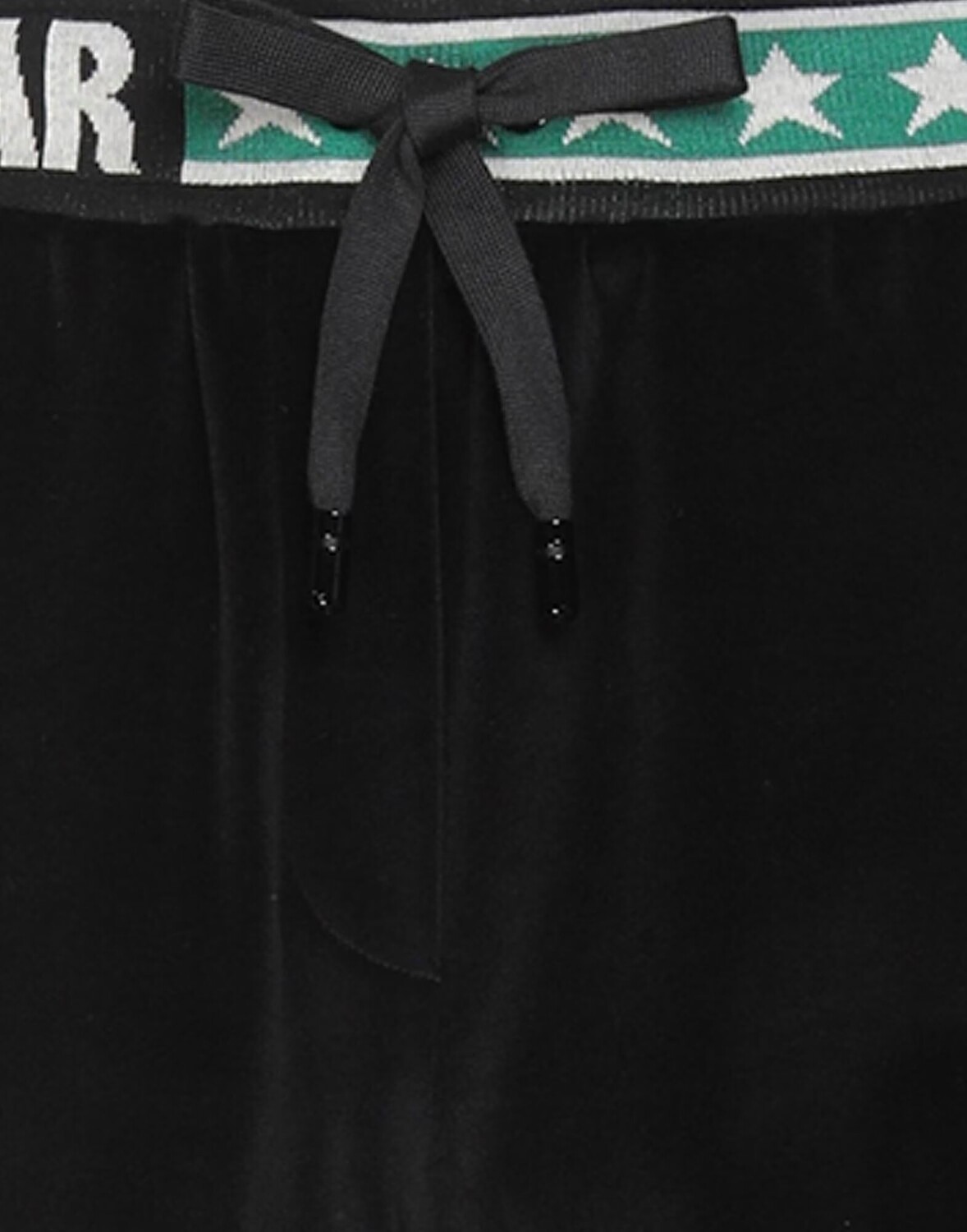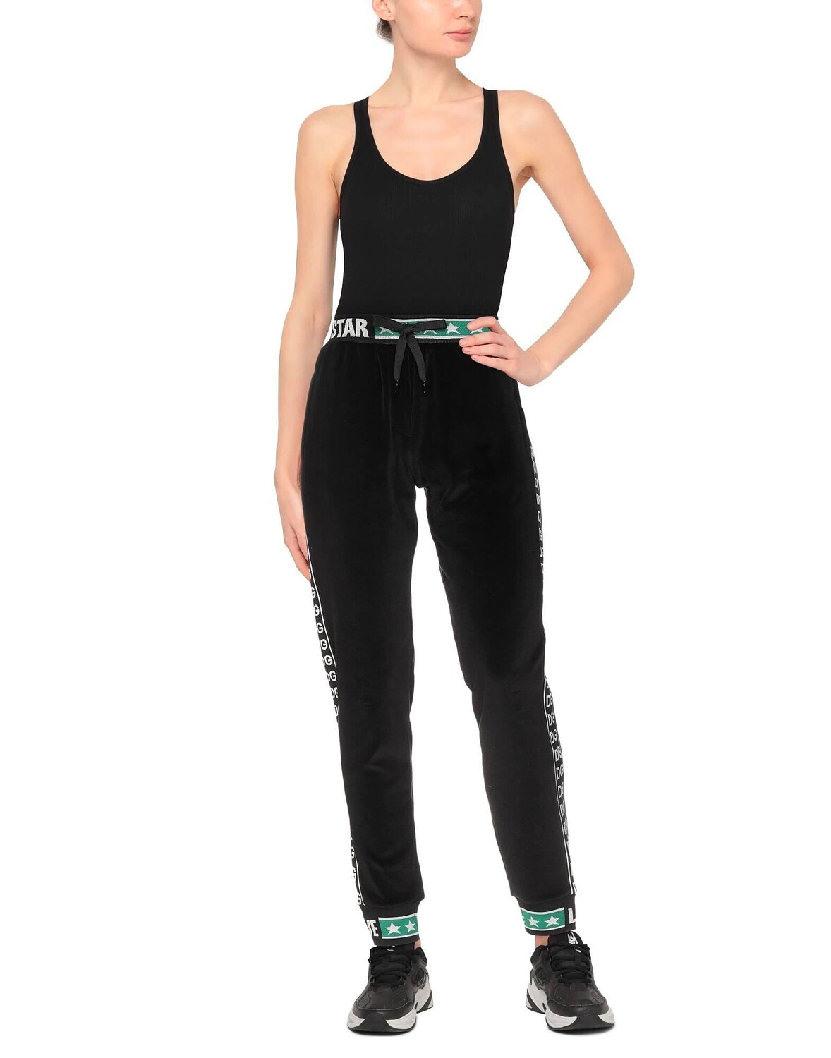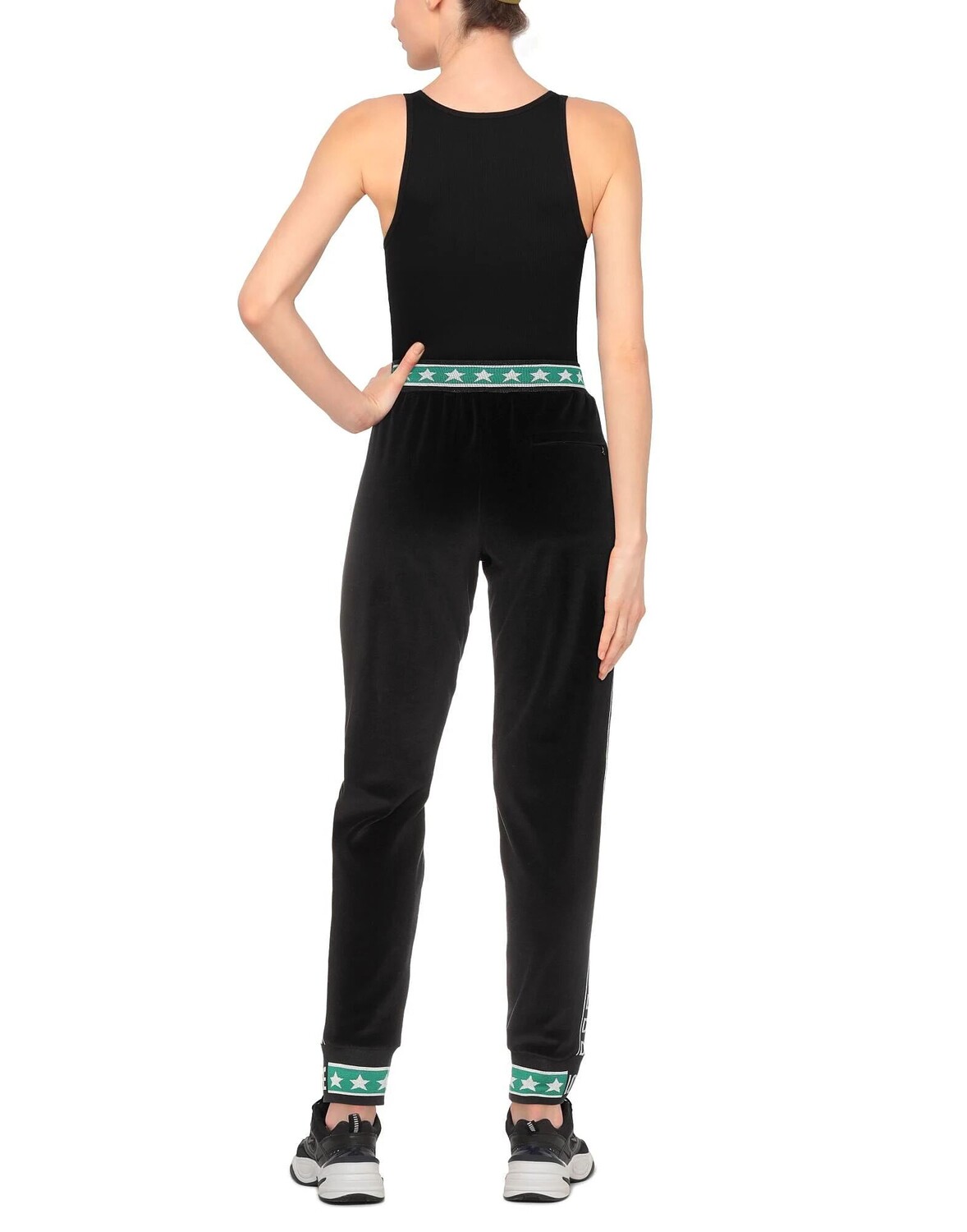 Бархат, одноцветное изделие, логотип, полосы по боковым швам, завышенная талия, стандартный крой, зауженные брючины, застежка-кулиска, множество карманов