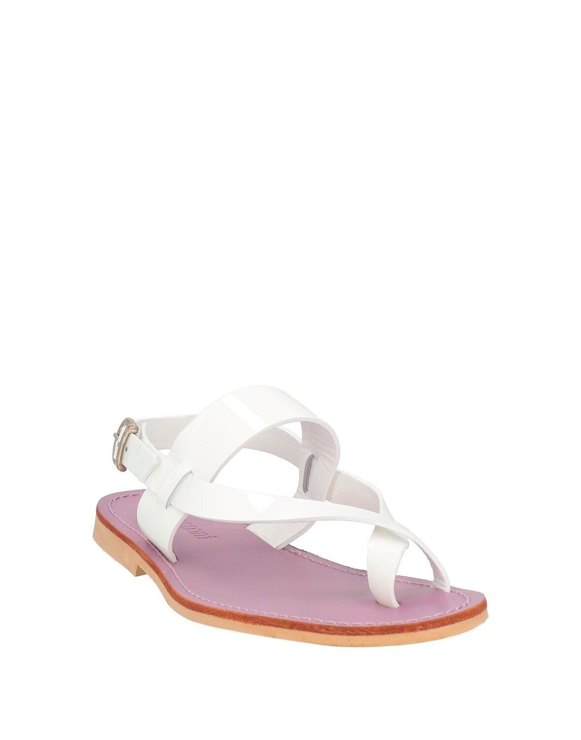 Кожа, эффект лака, логотип бренда, одноцветное изделие, кожаная подкладка, ремешок на щиколотке с пряжкой, скругленный носок, без каблука, резиновая подошва, содержит нетекстильные части животного происхождения, босоножки с ремешком на носке