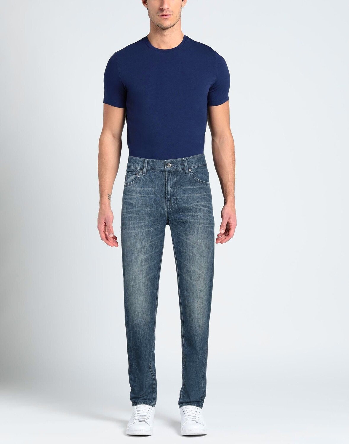 Деним, выцветший, логотип бренда, одноцветное изделие, средняя стирка, заниженная талия, шлевки для ремня, зауженная брючина, стандартный крой, 1 пуговица, застежка-молния, множество карманов, модель скинни