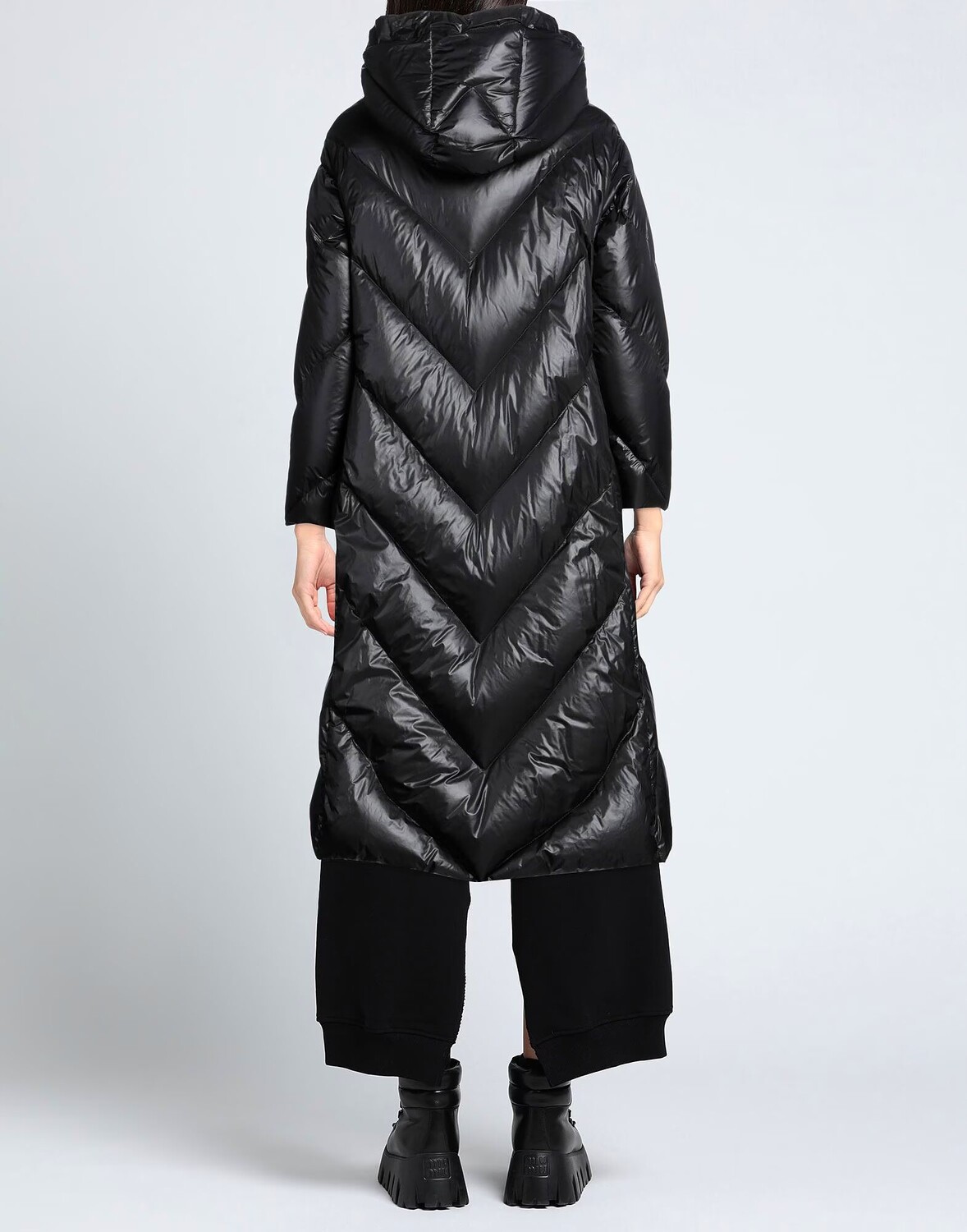Техническая ткань, без аппликаций, одноцветное изделие, воротник с капюшоном, однобортный, длинные рукава, внутренняя часть из гусиного пуха, застежка на кнопки, множество карманов, содержит нетекстильные части животного происхождения, однобортный пиджак