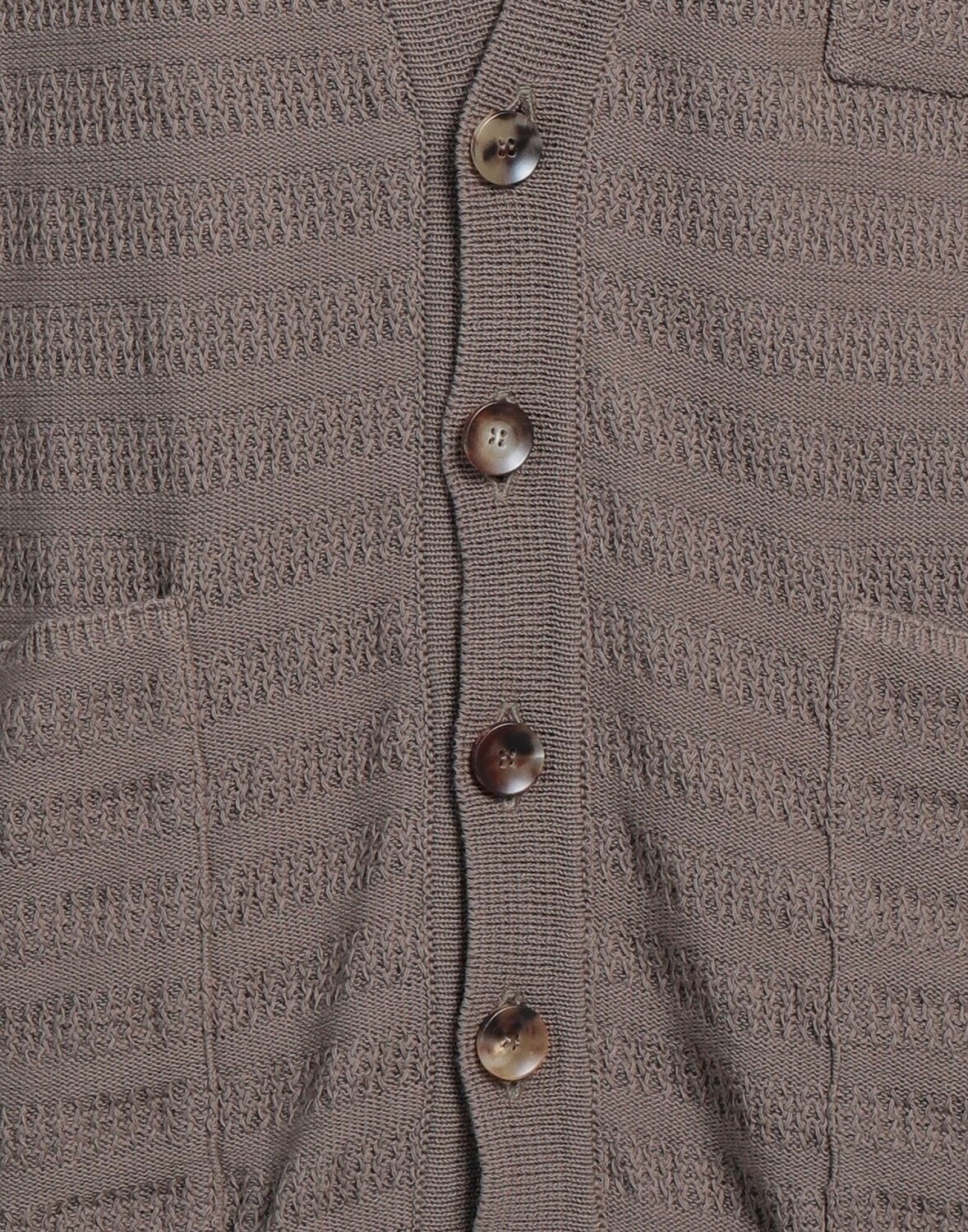 Трикотаж, легкая вязка, без аппликаций, одноцветное изделие, глубокий вырез горловины, длинные рукава, застежка на пуговицы, множество карманов