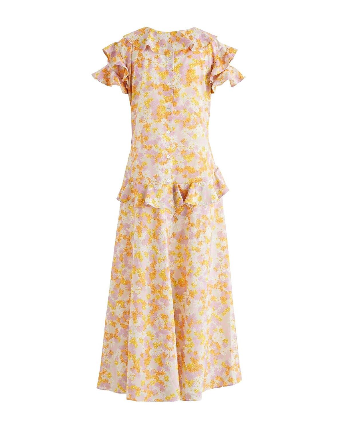 Креп, оборки, цветочный дизайн, круглый воротник, короткие рукава, без подкладки, застежка-молния, платье