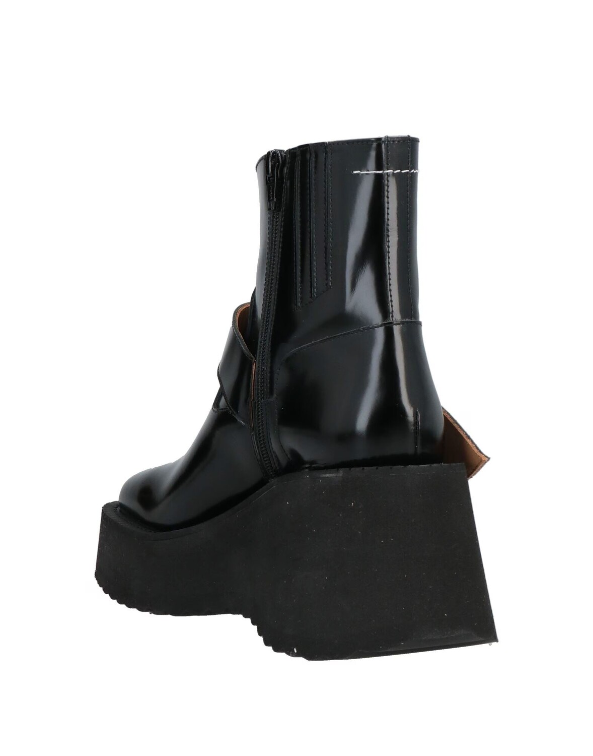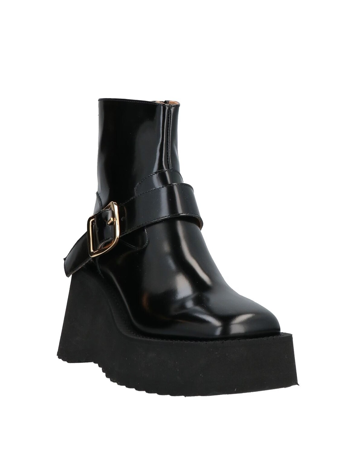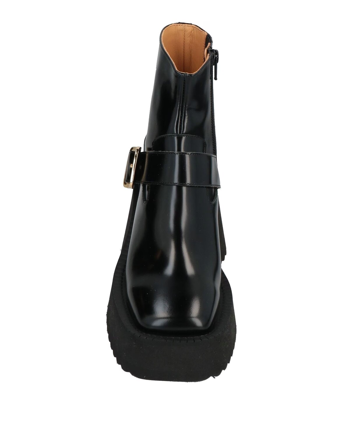 Кожа, пряжка, одноцветное изделие, кожаная подкладка, застежка-молния, скругленный носок, танкетка, резиновая подошва с тиснением, содержит нетекстильные части животного происхождения, массивные ботинки
