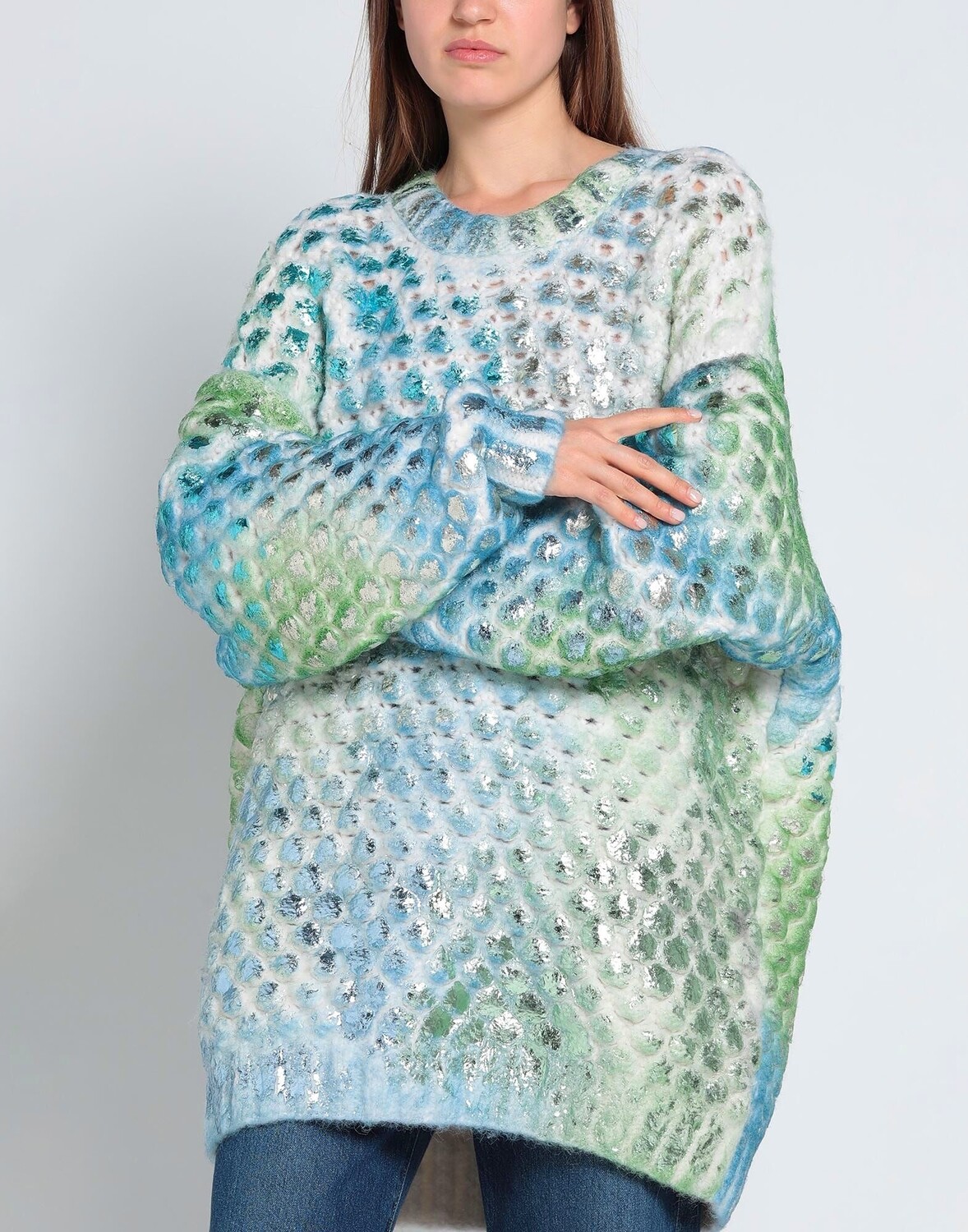 Трикотаж, эффект ламинирования, плотный трикотаж, без аппликаций, разноцветный узор, круглый воротник, длинные рукава, без карманов, стрейч