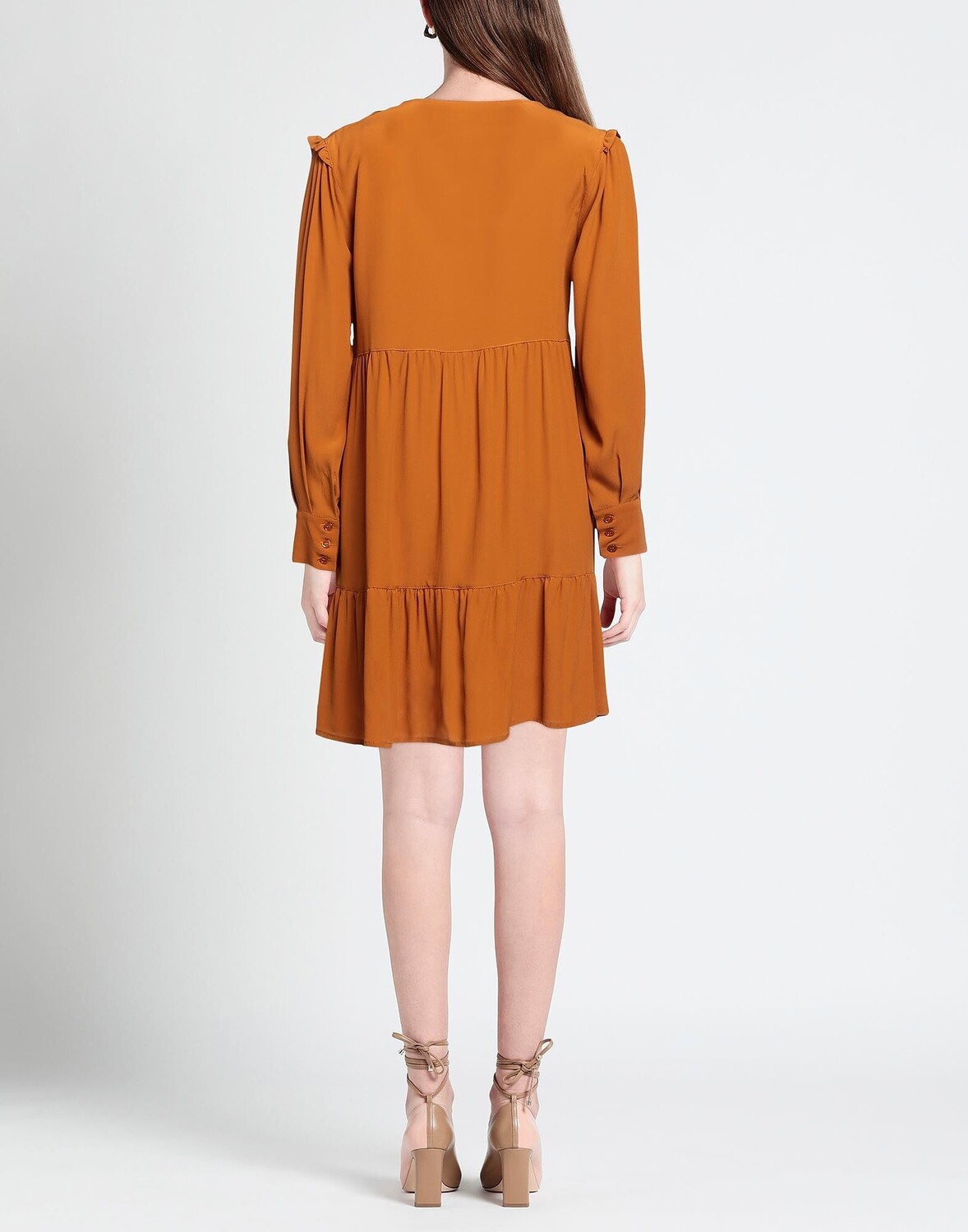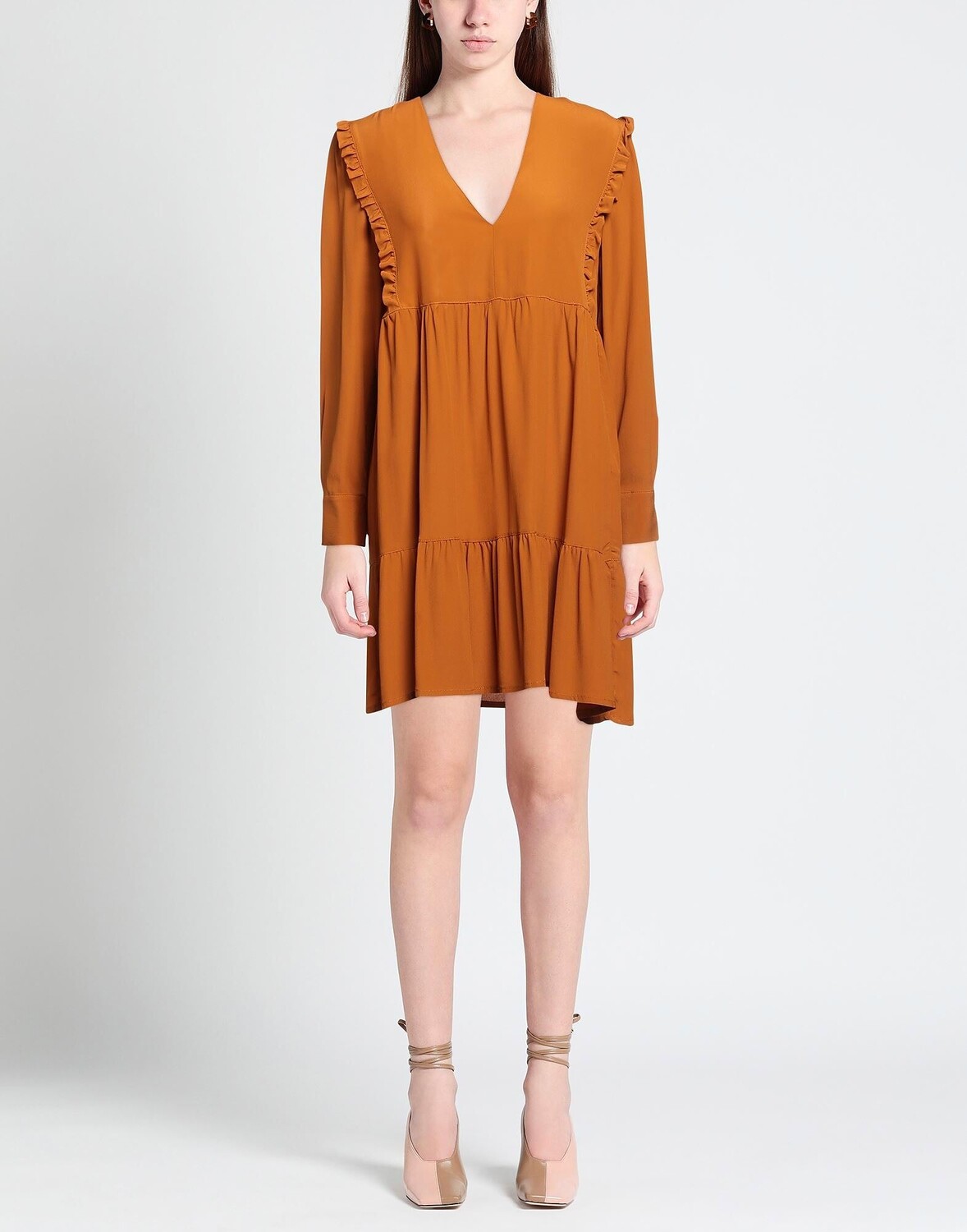 Креп, оборки, одноцветное изделие, глубокий вырез, длинные рукава, без подкладки, без карманов, фасон трапеция
