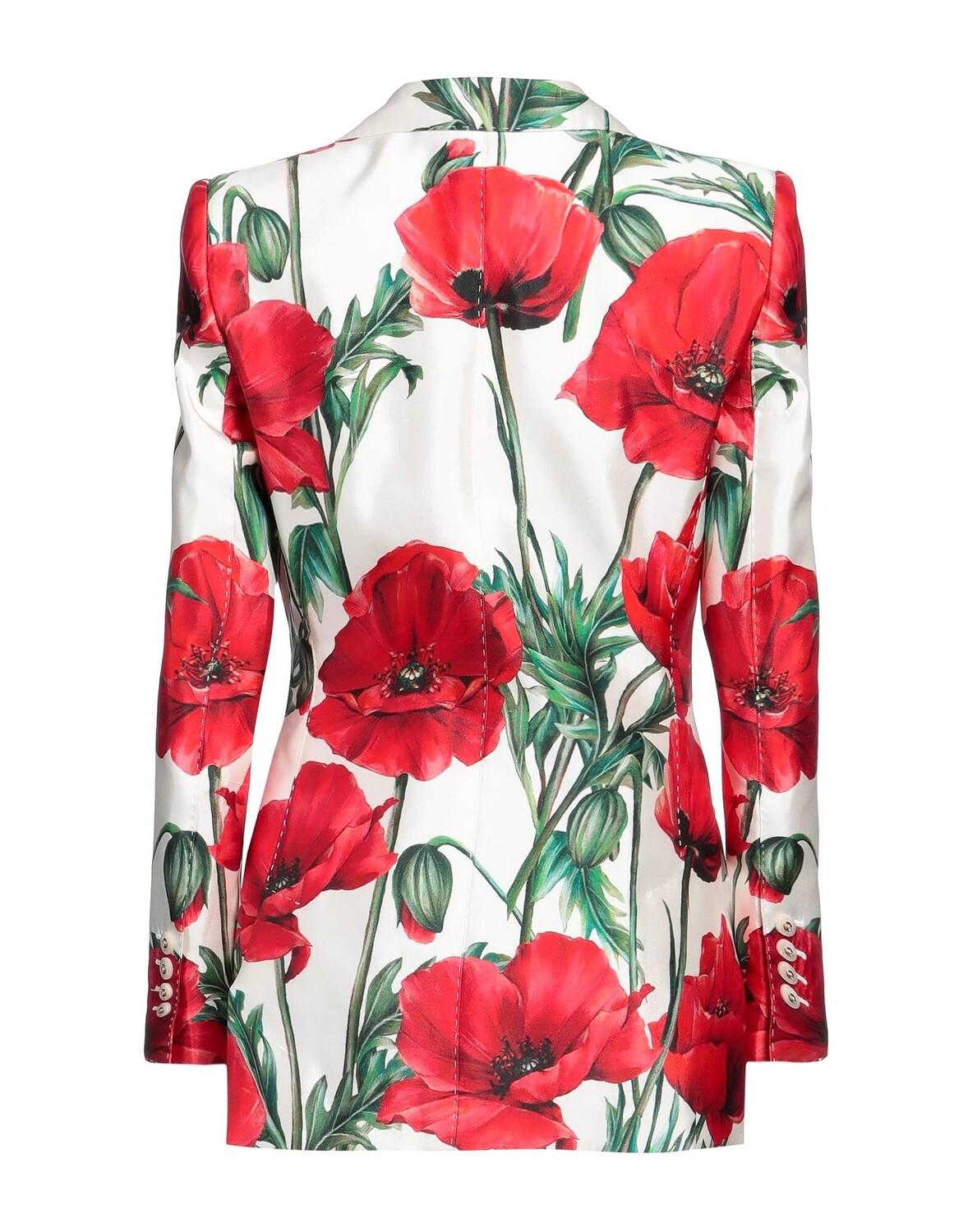Атлас, без аппликаций, цветочный принт, воротник с лацканами, однобортный, длинные рукава, манжеты на пуговицах, внутри на подкладке, пуговицы, множество карманов, однобортный пиджак
