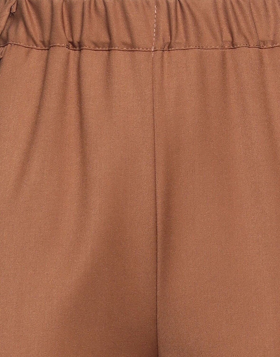 Ткань, без аппликаций, одноцветное изделие, завышенная талия, резинка на талии, свободный крой, подвернутый край, множество карманов, эластичный, не подвергать химчистке, не отбеливать, не сушить в стиральной машине, не гладить, зауженные брюки