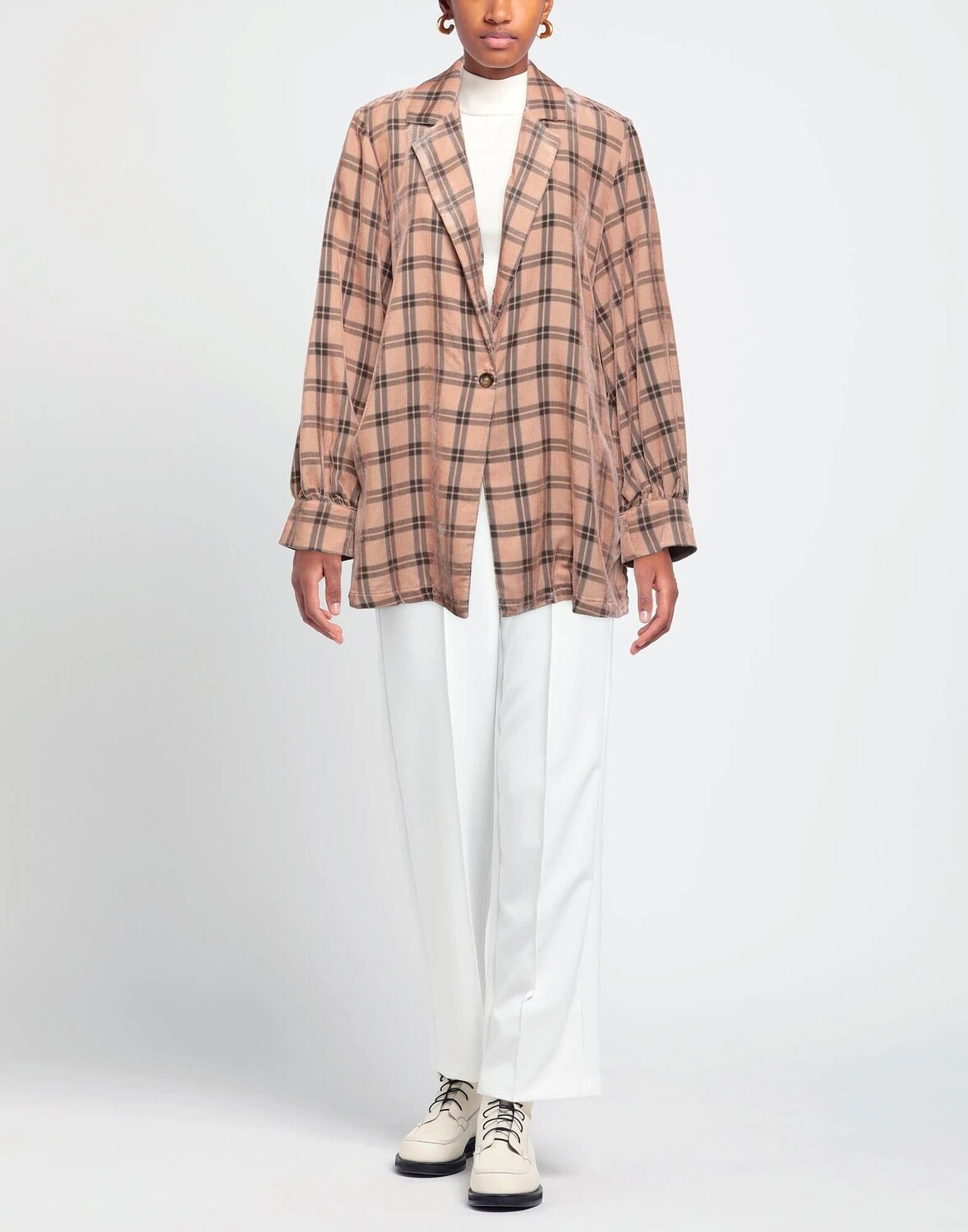 Бархат, Пуговицы, Воротник с лацканами, Длинные рукава, Клетка
