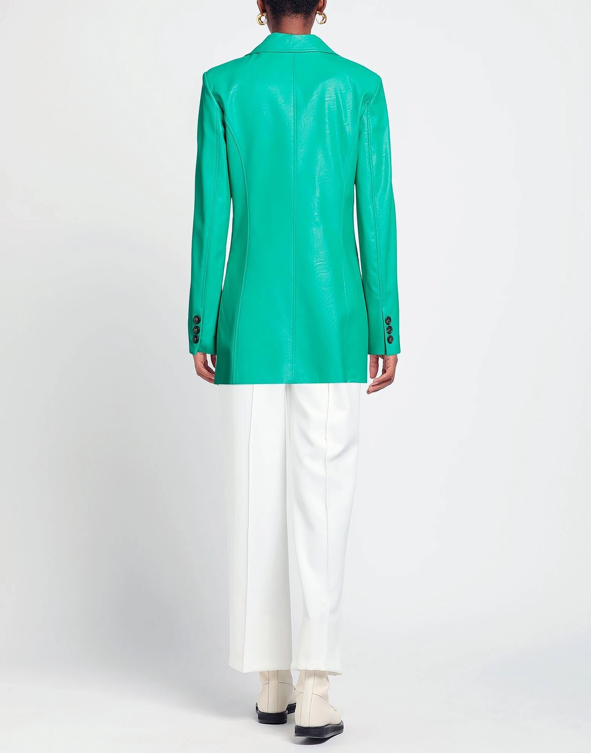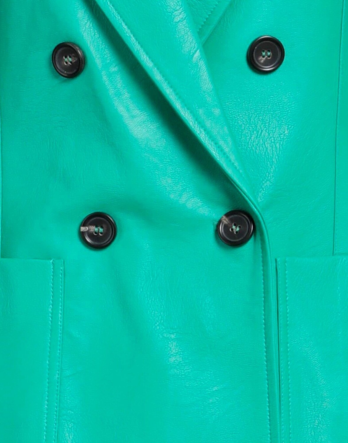 Ткань с покрытием, без аппликаций, одноцветное изделие, воротник с лацканами, двубортный, длинные рукава, на подкладке, застежка на пуговицы, множество карманов, двубортный пиджак