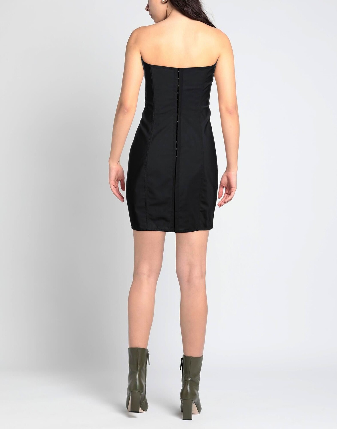 Техническая ткань, без аппликаций, одноцветное изделие, глубокий вырез, без рукавов, бюстгальтер внутри, застежка на крючки, без карманов, стрейч, фасон-карандаш