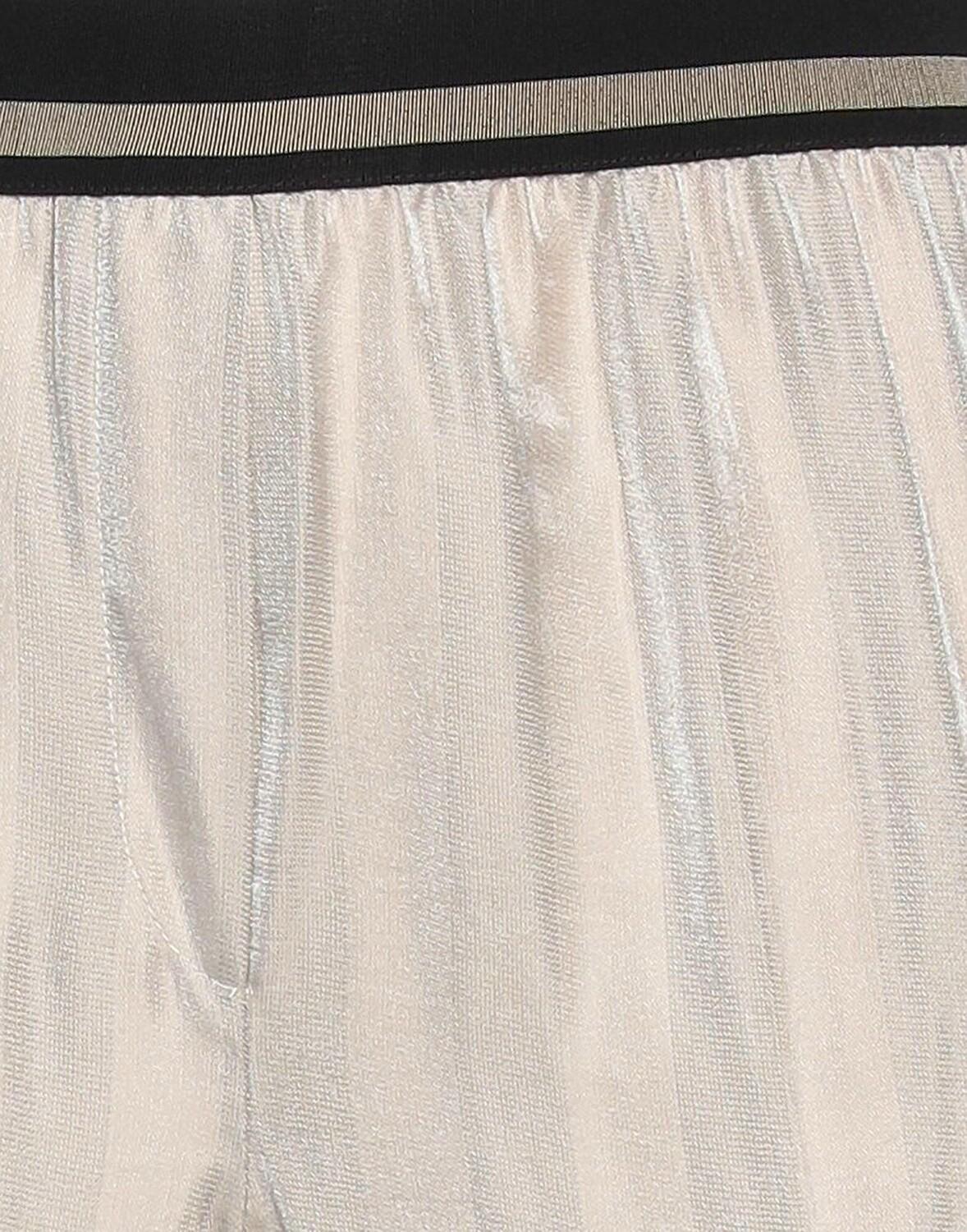 Зауженные брюки, саржа, металлик, без аппликаций, в полоску, завышенная талия, резинка на талии, свободный крой, множество карманов, ручная стирка или химчистка, нельзя отбеливать, нельзя сушить в стиральной машине