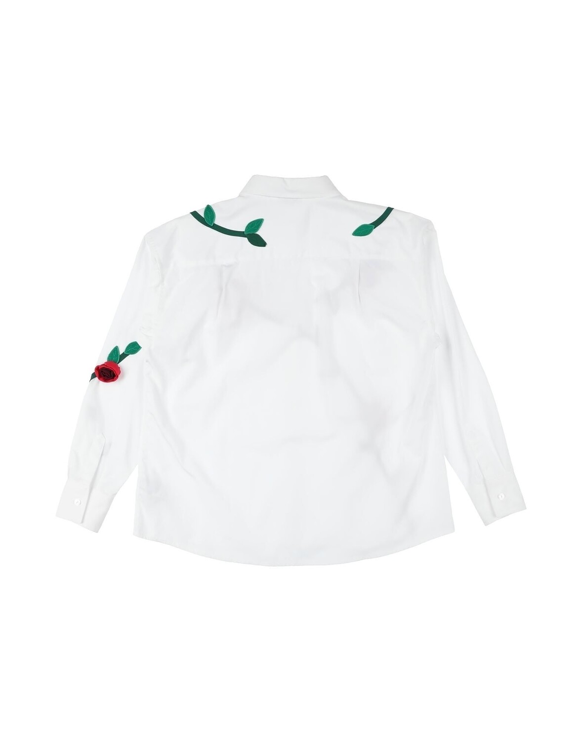 Поплин, контрастные аппликации, цветочные аппликации, однотонный цвет с аппликациями, классический воротник, длинные рукава, манжеты на пуговицах, застежка на пуговицы, без карманов, нельзя стирать, подлежит химчистке, не отбеливать, нельзя сушить в стиральной машине, гладить при температуре не выше 110°C
