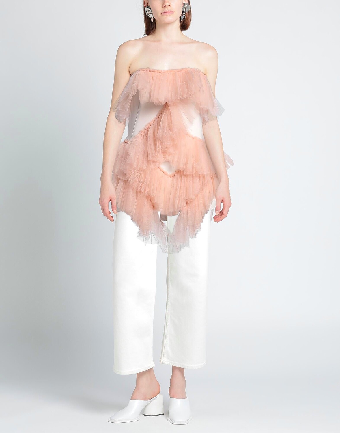 Тюль, креп, оборки, двухцветный, глубокий вырез, без рукавов, на подкладке, застежка-молния, без карманов, стрейч, верх со сборками
