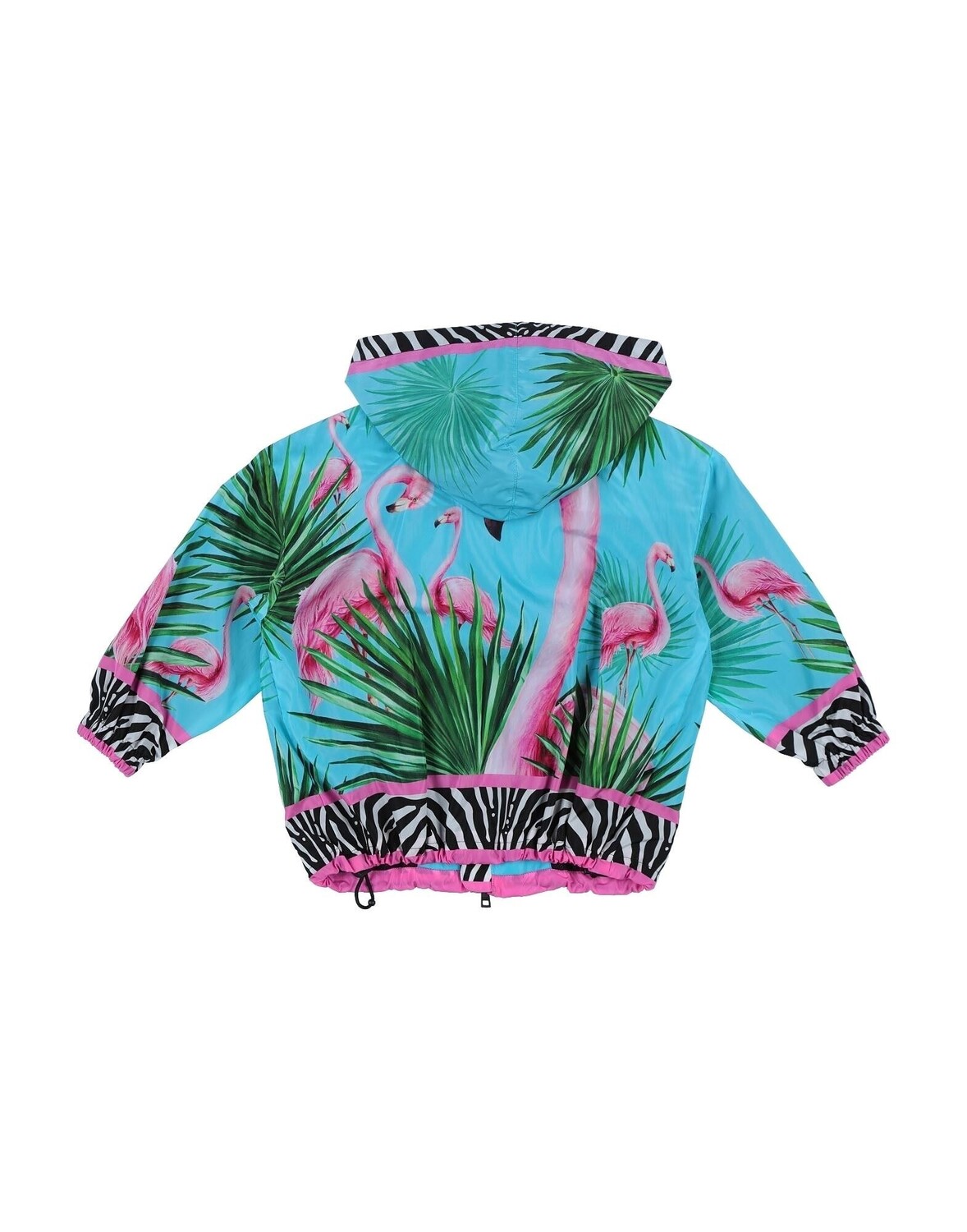Техническая ткань, логотип бренда, цветочный дизайн, полоски под зебру, воротник с капюшоном, однобортный, длинные рукава, внутри на подкладке, застежка-молния, множество карманов, стирать при 30°C, не подвергать химчистке, не отбеливать, не подвергать машинной сушке, гладить при температуре не выше 110°C, модель «ветровка»