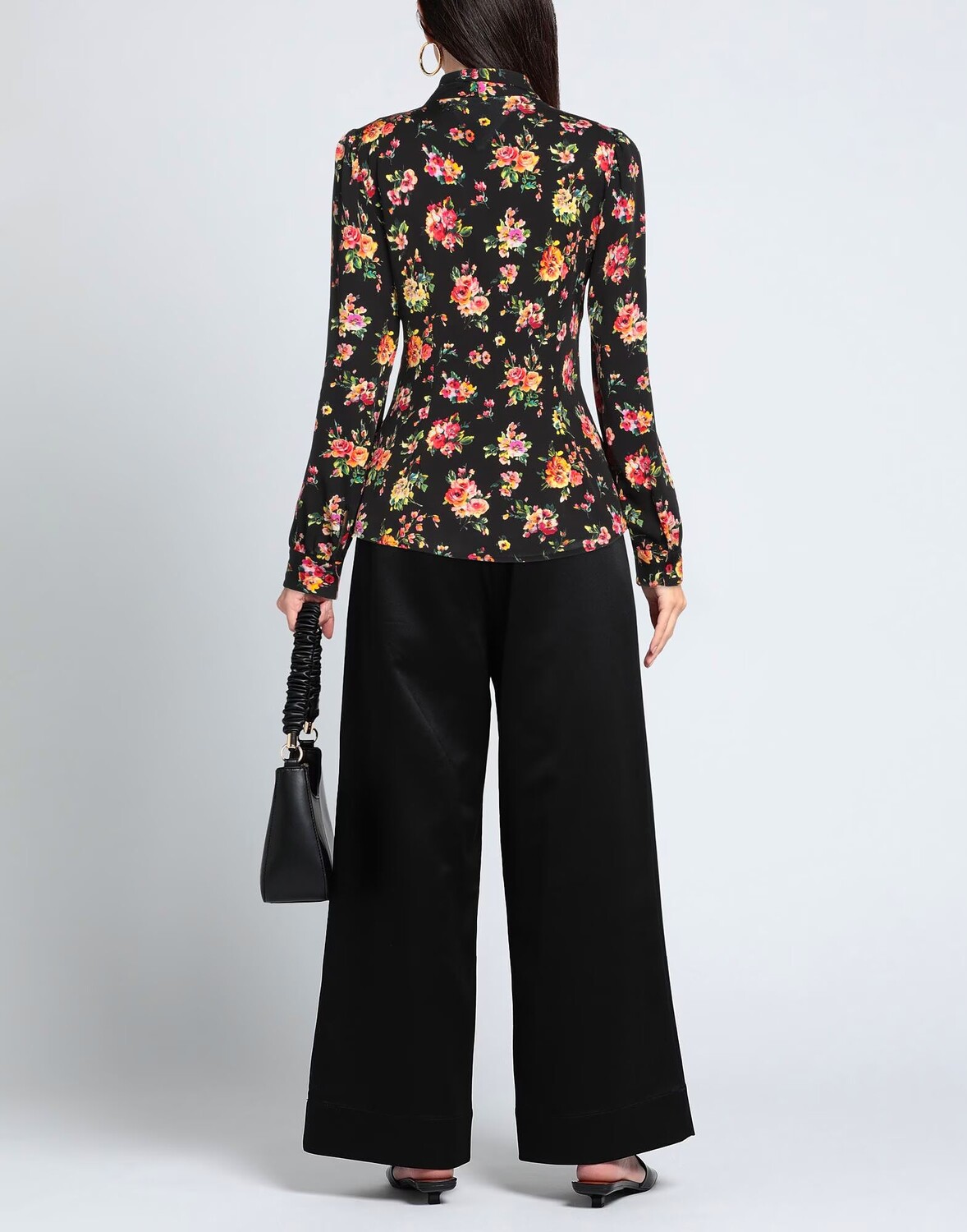 Рубашка-бантик, креп, без аппликаций, цветочный принт, вырез-бабочка, длинные рукава, без карманов, стрейч