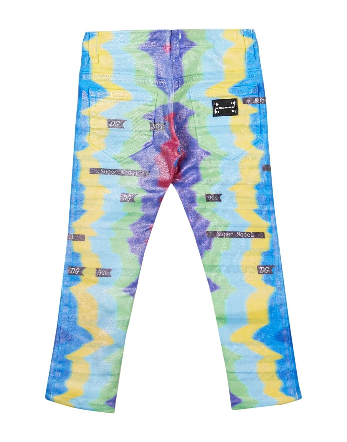 Джинсовая ткань, принт, логотип бренда, разноцветный рисунок, средняя посадка, шлевки для ремня, 1 пуговица, застежка-молния, пять карманов, стирка при 30°C, не подвергать химчистке, не отбеливать, не использовать машинную сушку, не гладить, тонкие ткани модель
