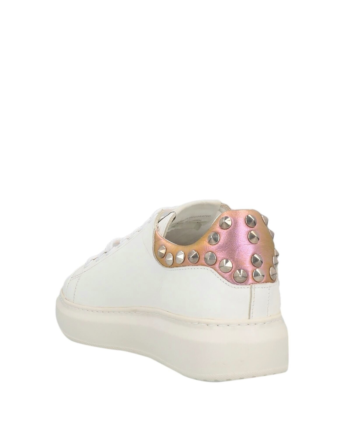 Кожа, металлик, заклепки, логотип бренда, двухцветный, на подкладке, шнуровка, круглый носок, без каблука, резиновая подошва, содержит нетекстильные части животного происхождения, низкие кеды