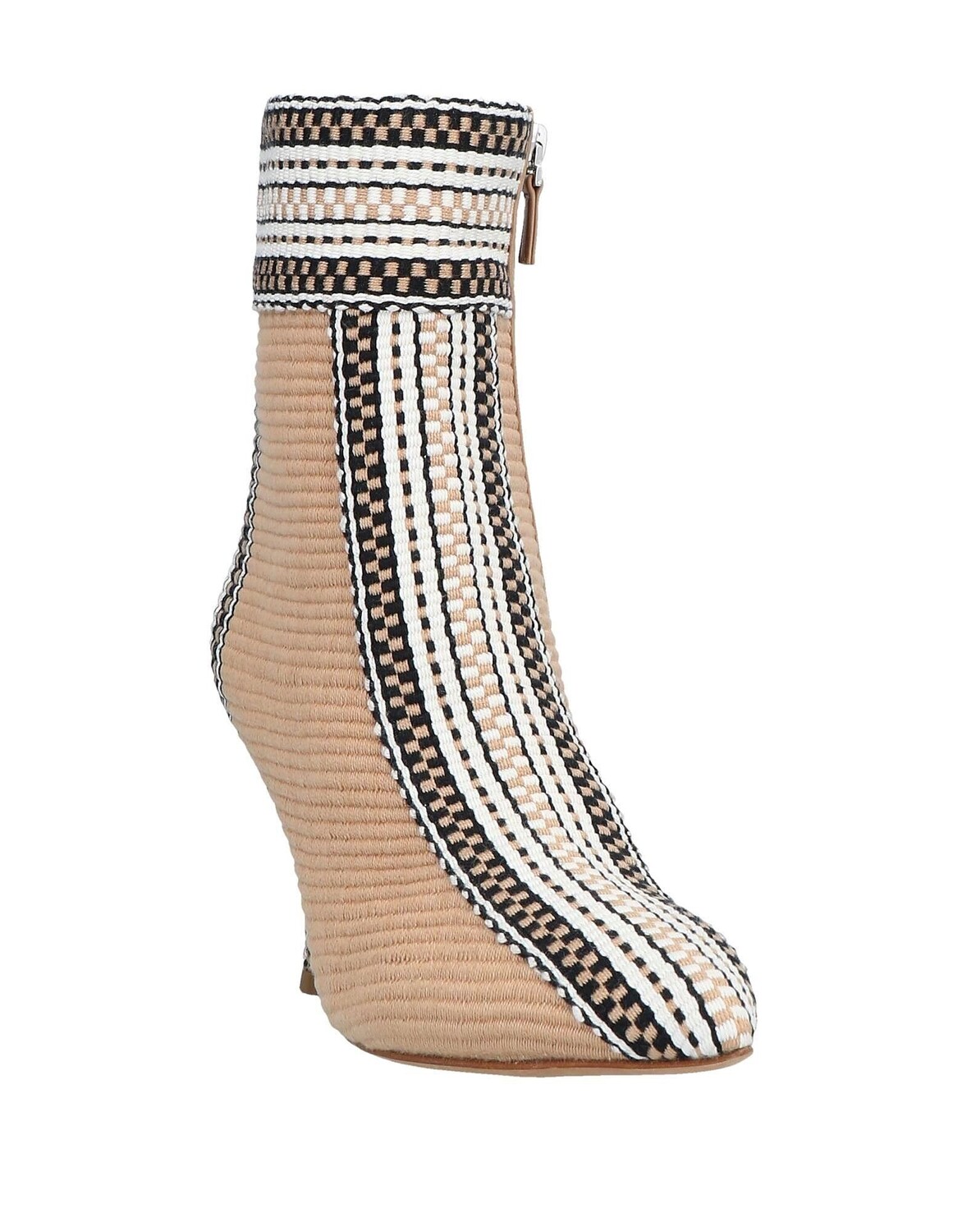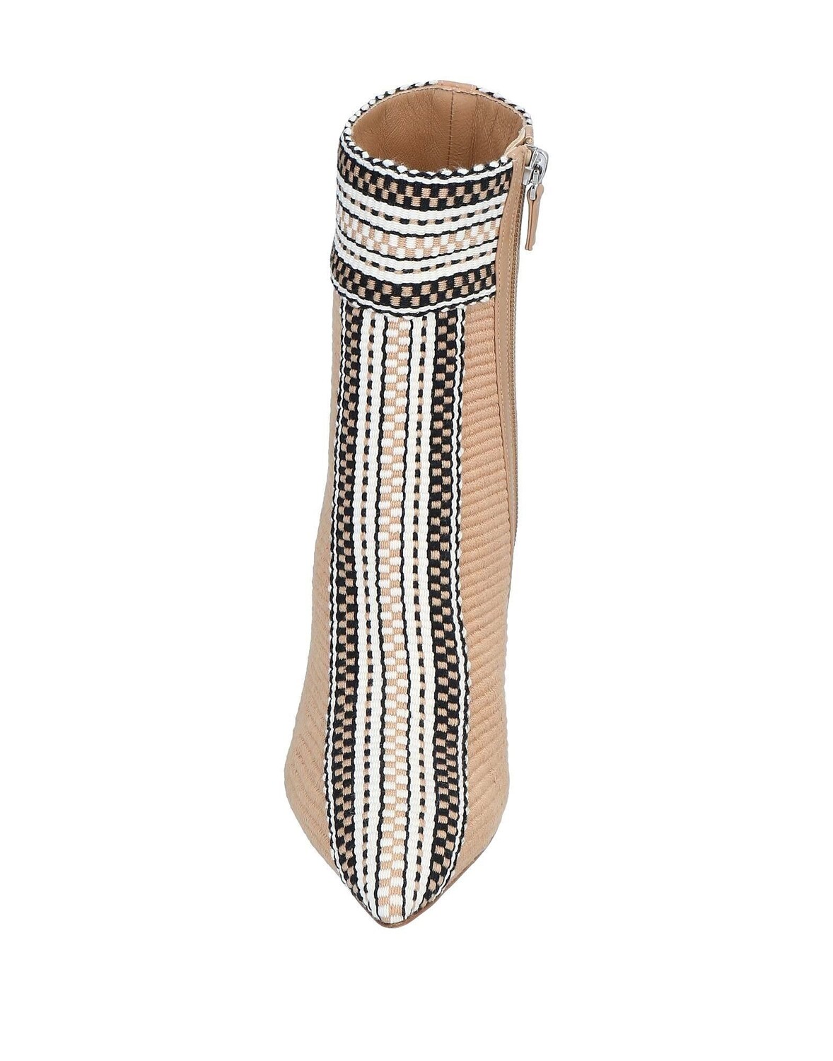 Полотняное переплетение, без аппликаций, разноцветный узор, подкладка из кожи, застежка-молния, узкий носок, катушечный каблук, обтянутый каблук, кожаная подошва, содержит нетекстильные части животного происхождения